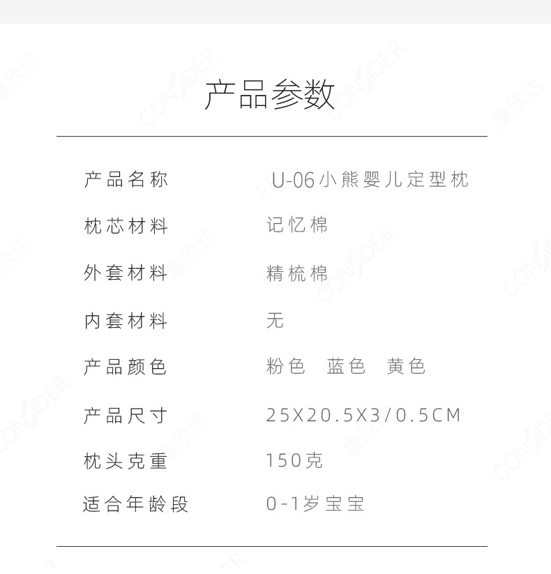 UMI跨境专供记忆棉婴儿定型枕 四季通用 现货批发新生儿防偏头