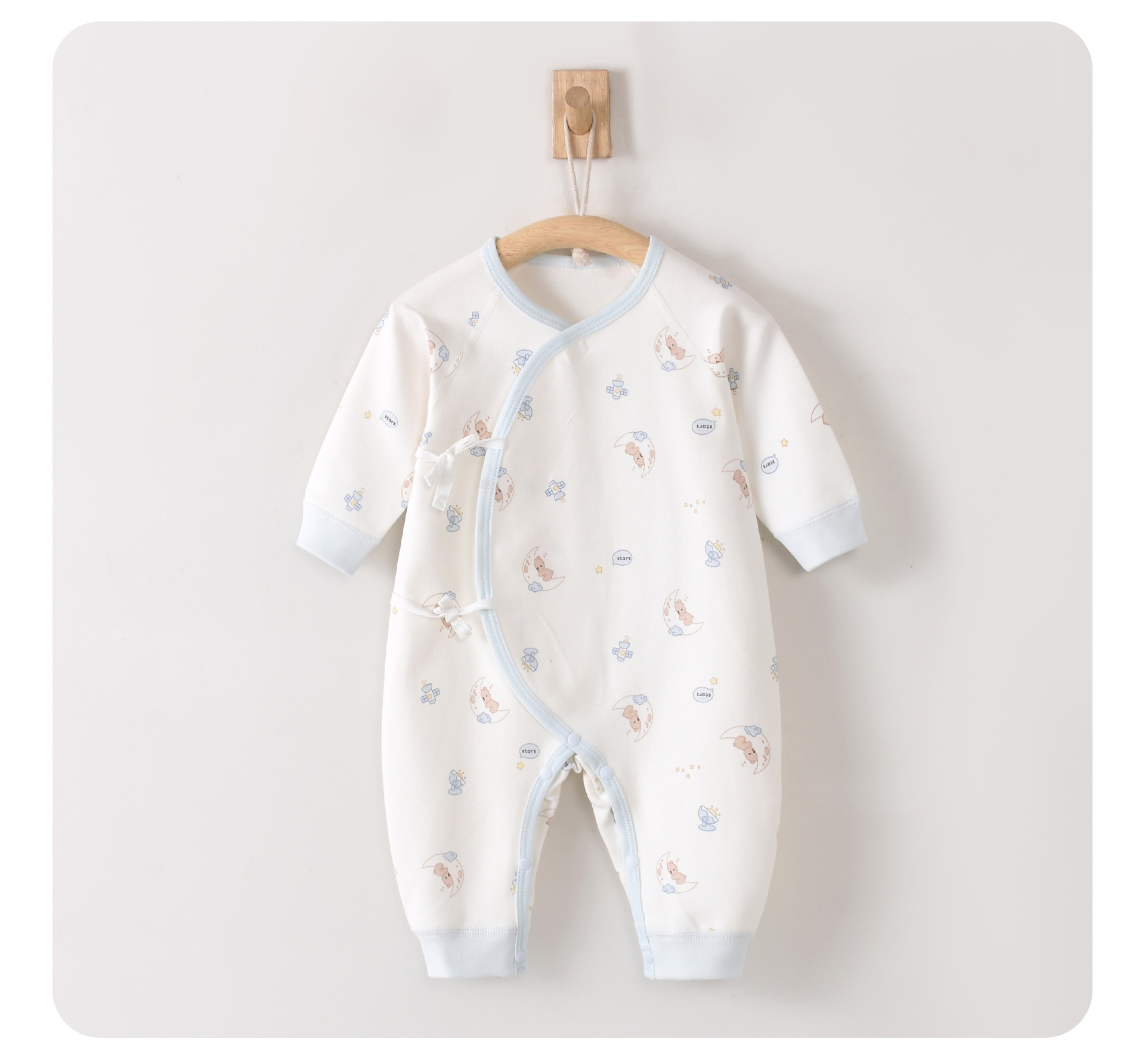 婴儿衣服新生儿连体衣舒绒秋季装初生宝宝秋冬款系绳哈衣爬服套装