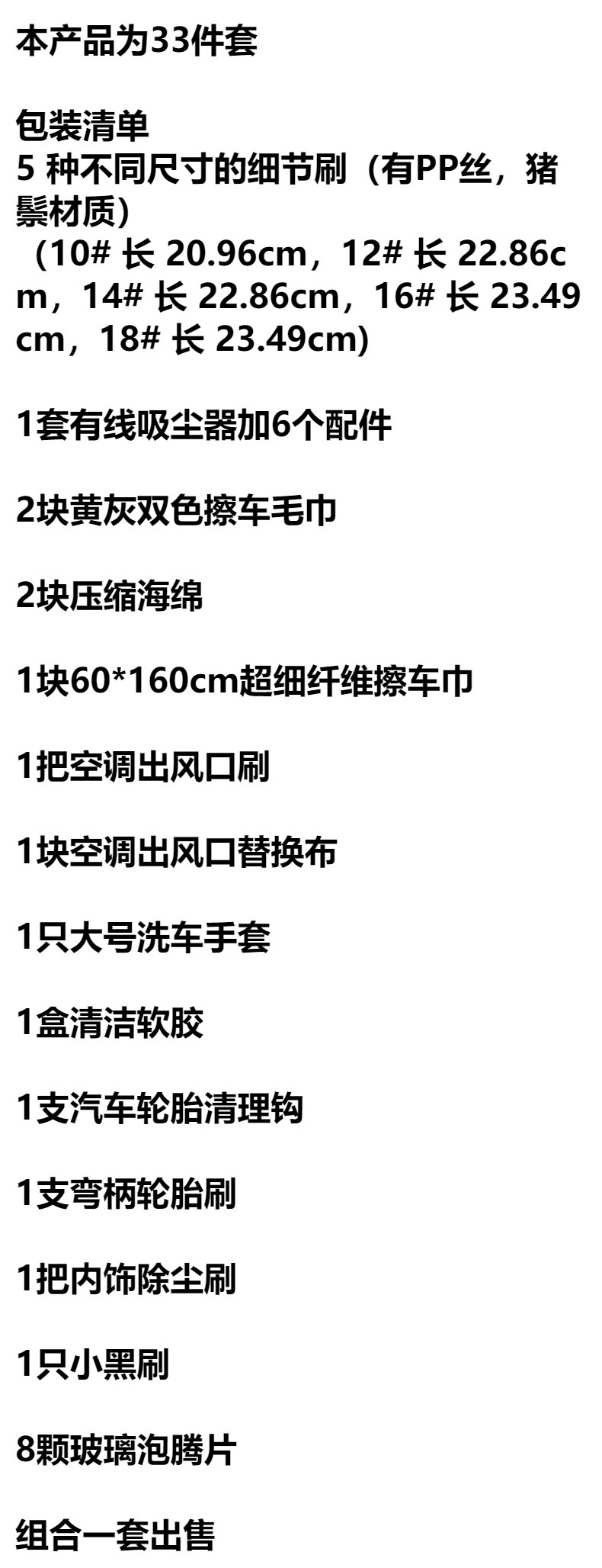 亚马逊热卖汽车内饰吸尘器清洁套装33件套轮胎缝隙清洁工具洗车刷