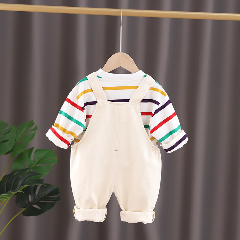 婴儿连体衣宝宝春秋装套装洋气儿童衣服小童婴儿男童背带裤两件套