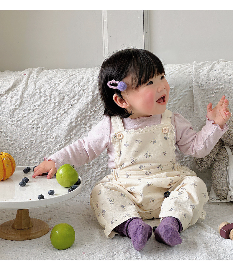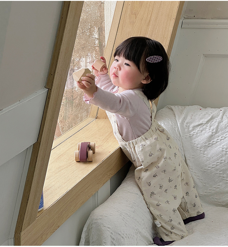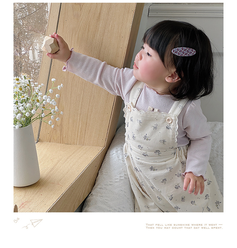 婴儿连体衣套装北欧碎花外出服女宝宝打底衫背带裤森系幼童两件套