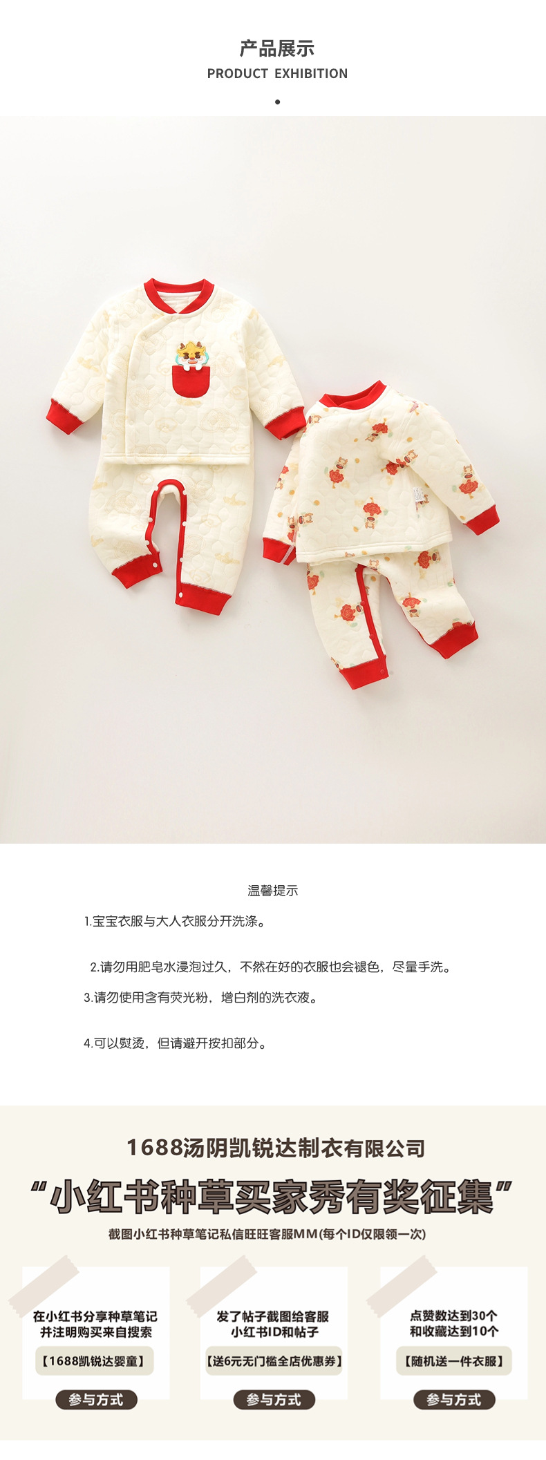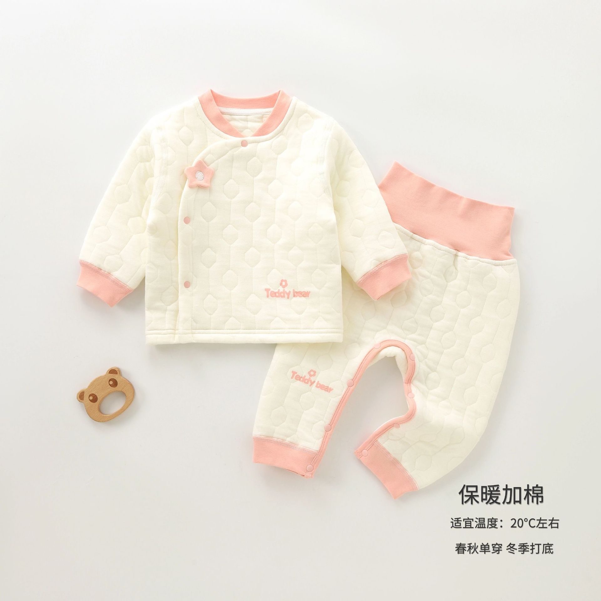 新品婴儿保暖套装夹棉冬装分体免脱宝宝衣服秋冬两件套a类冬季