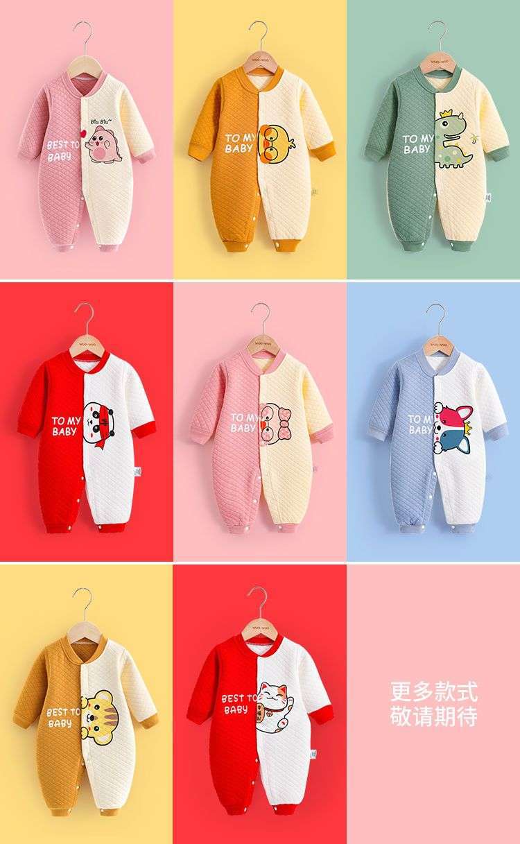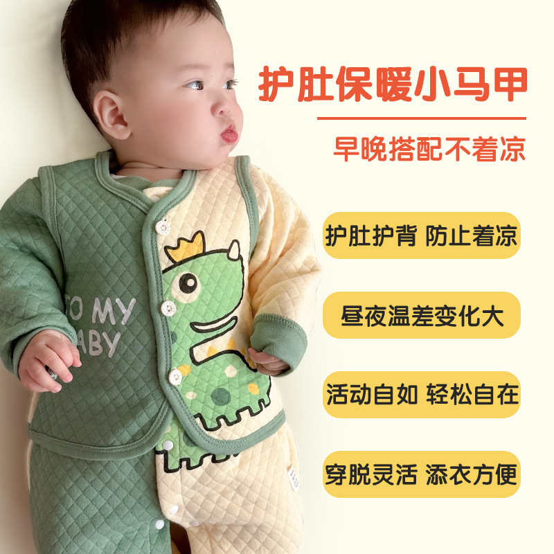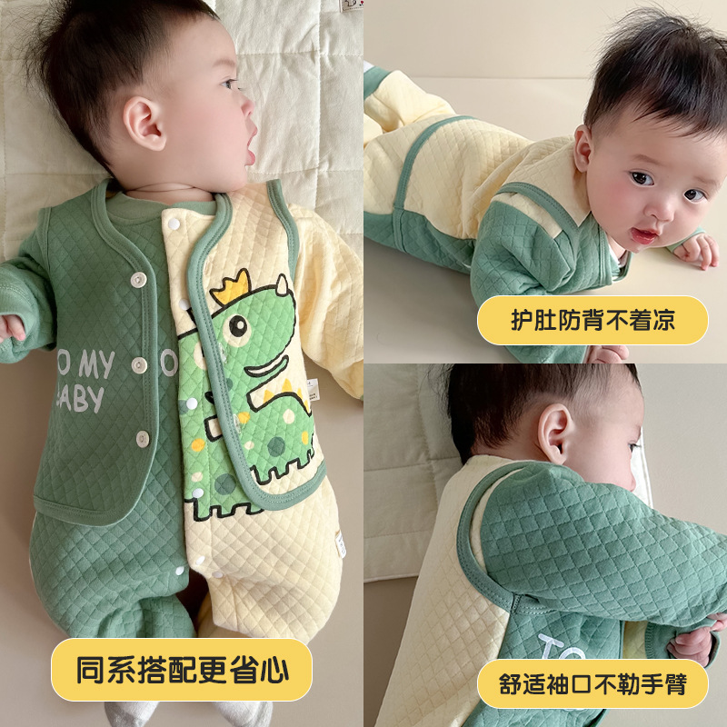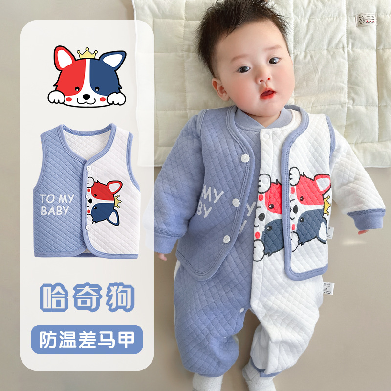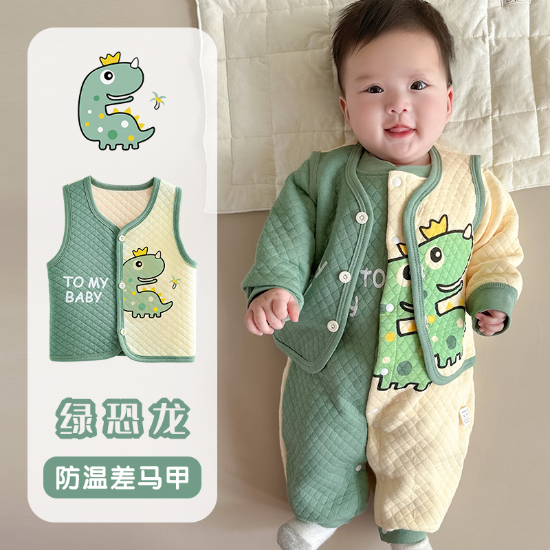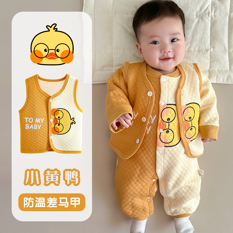婴儿衣服春秋保暖连体衣套装超萌可爱宝宝马甲春款夹棉新生儿哈衣