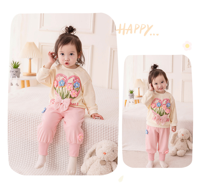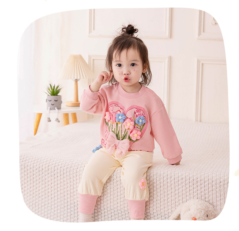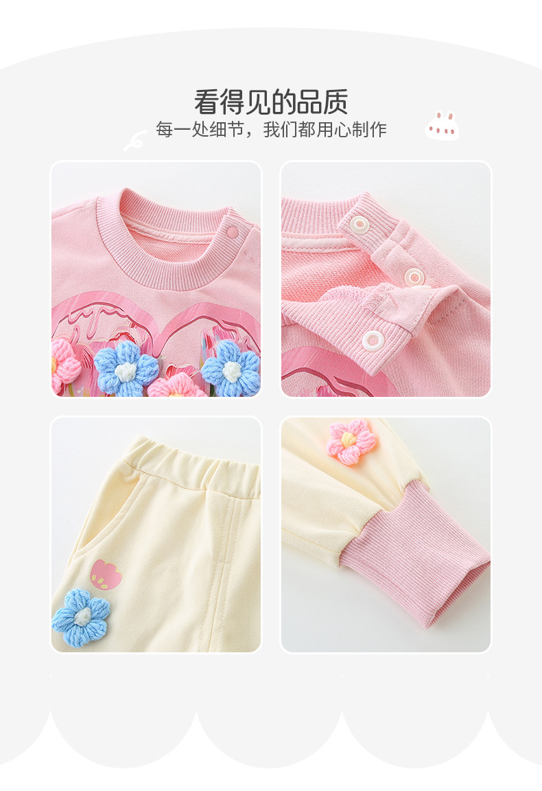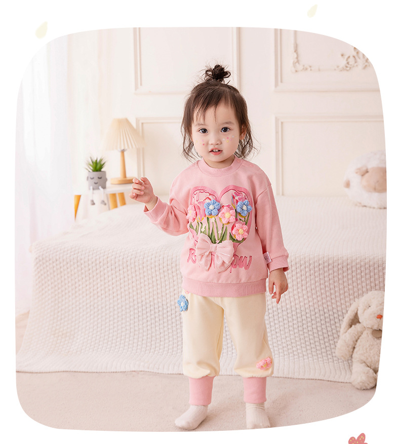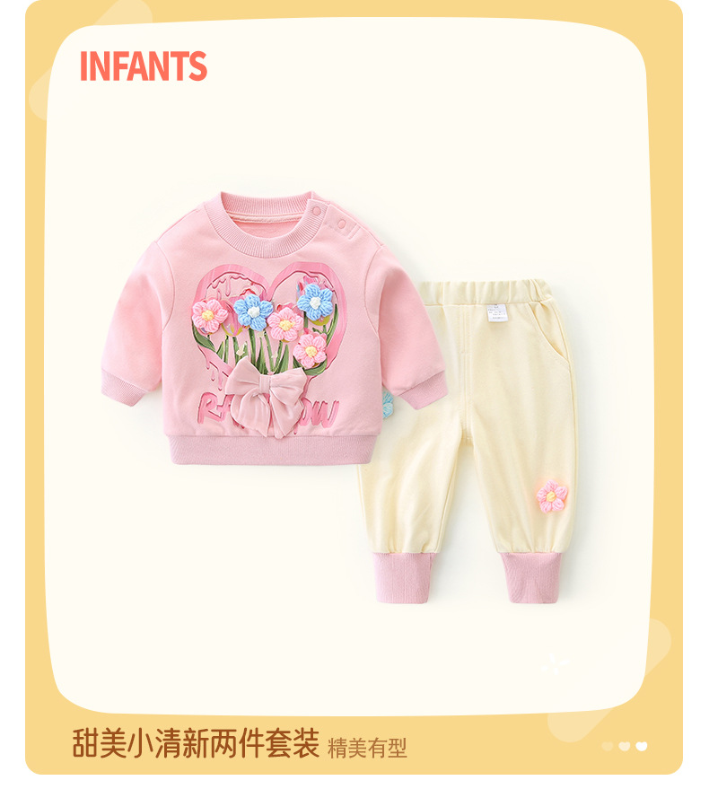 婴儿棉套装2024春季小童休闲两件套女宝宝洋气卫衣长袖春秋装3508