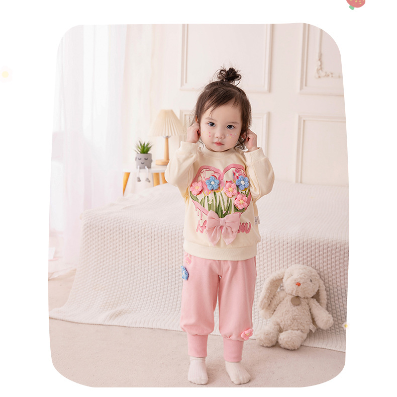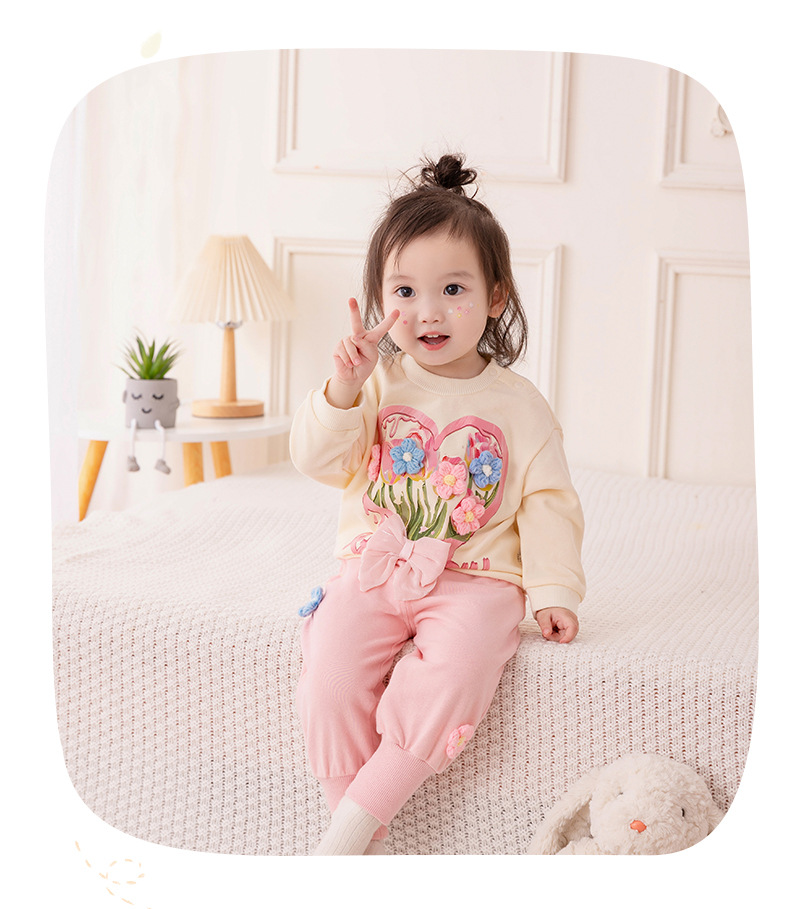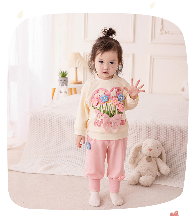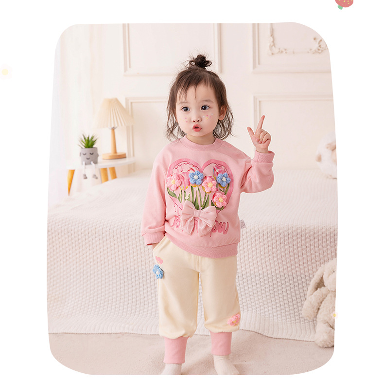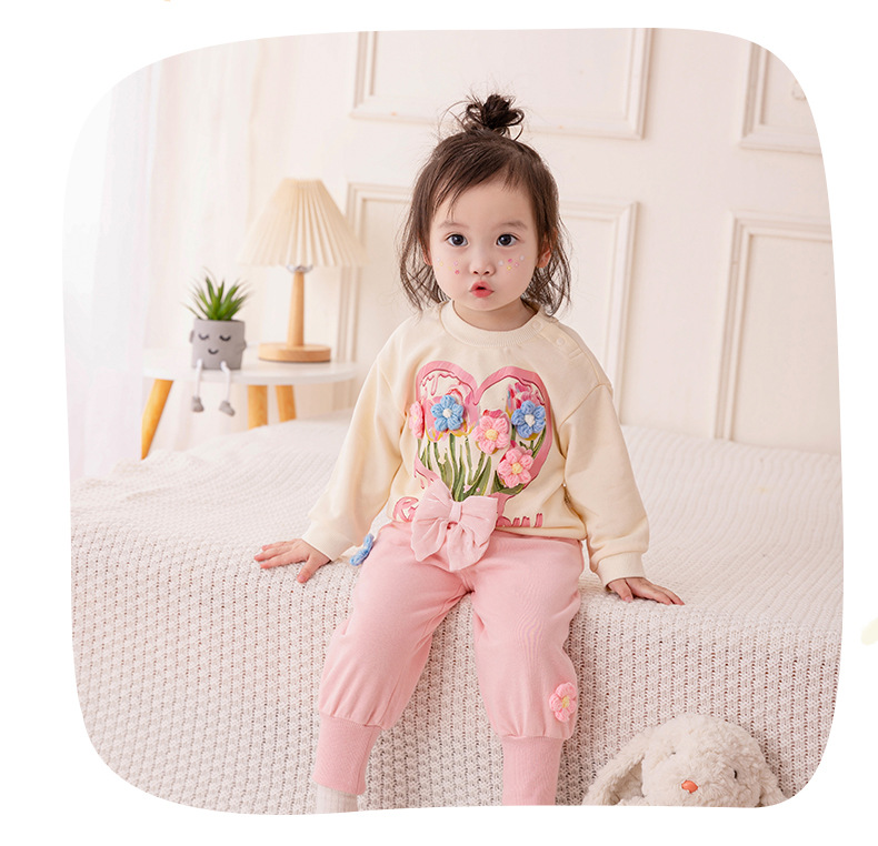 婴儿棉套装2024春季小童休闲两件套女宝宝洋气卫衣长袖春秋装3508