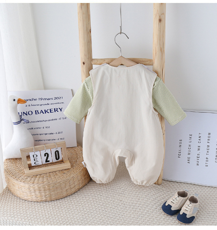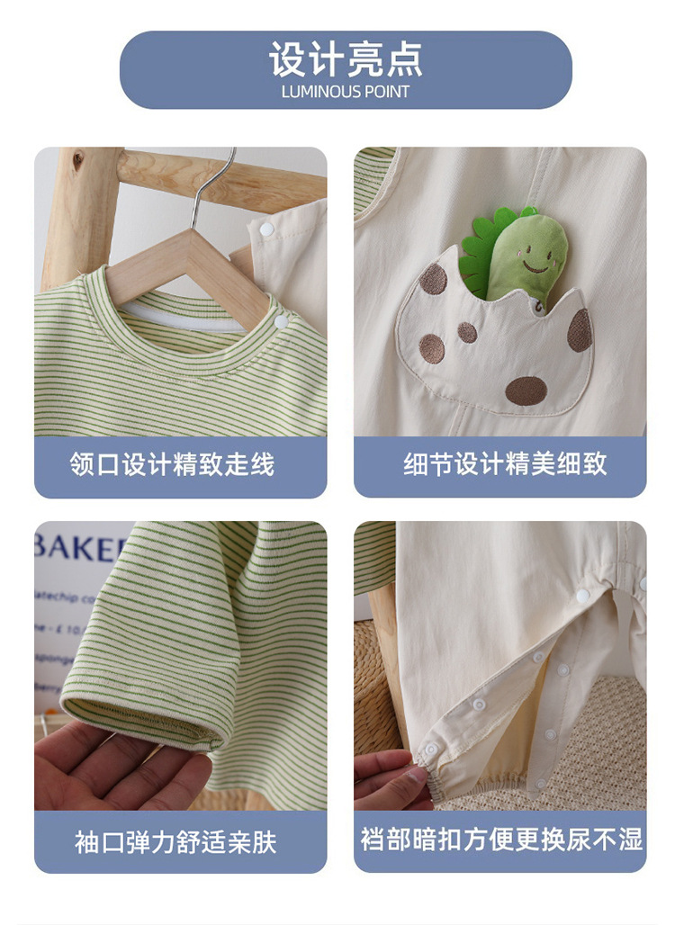 婴儿套装春季新款超可爱卡通宝宝两件套哈衣新生儿衣服T恤+背带裤