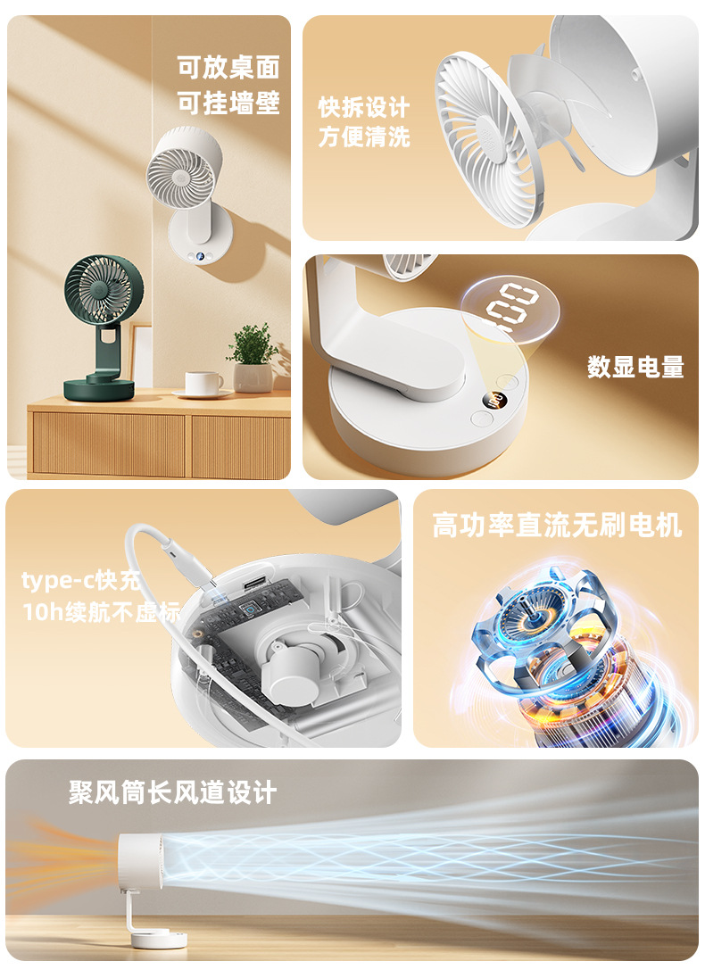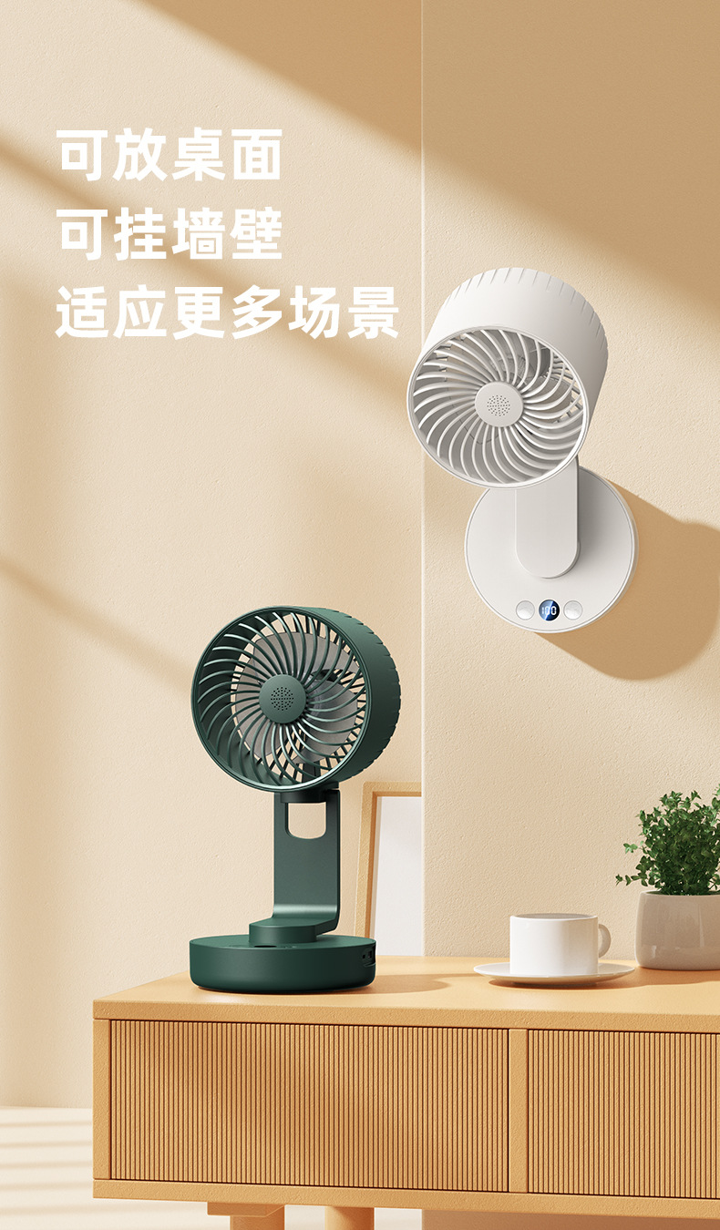 24跨境新款空气循环扇 家用大风力摇头夜灯桌面定时usb台式小风扇