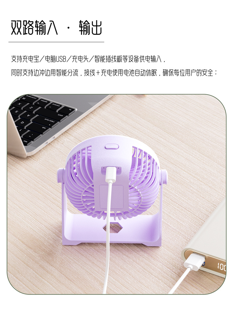 桌面循环扇台式迷你风扇type-c充电静音三档可调办公室家用风扇