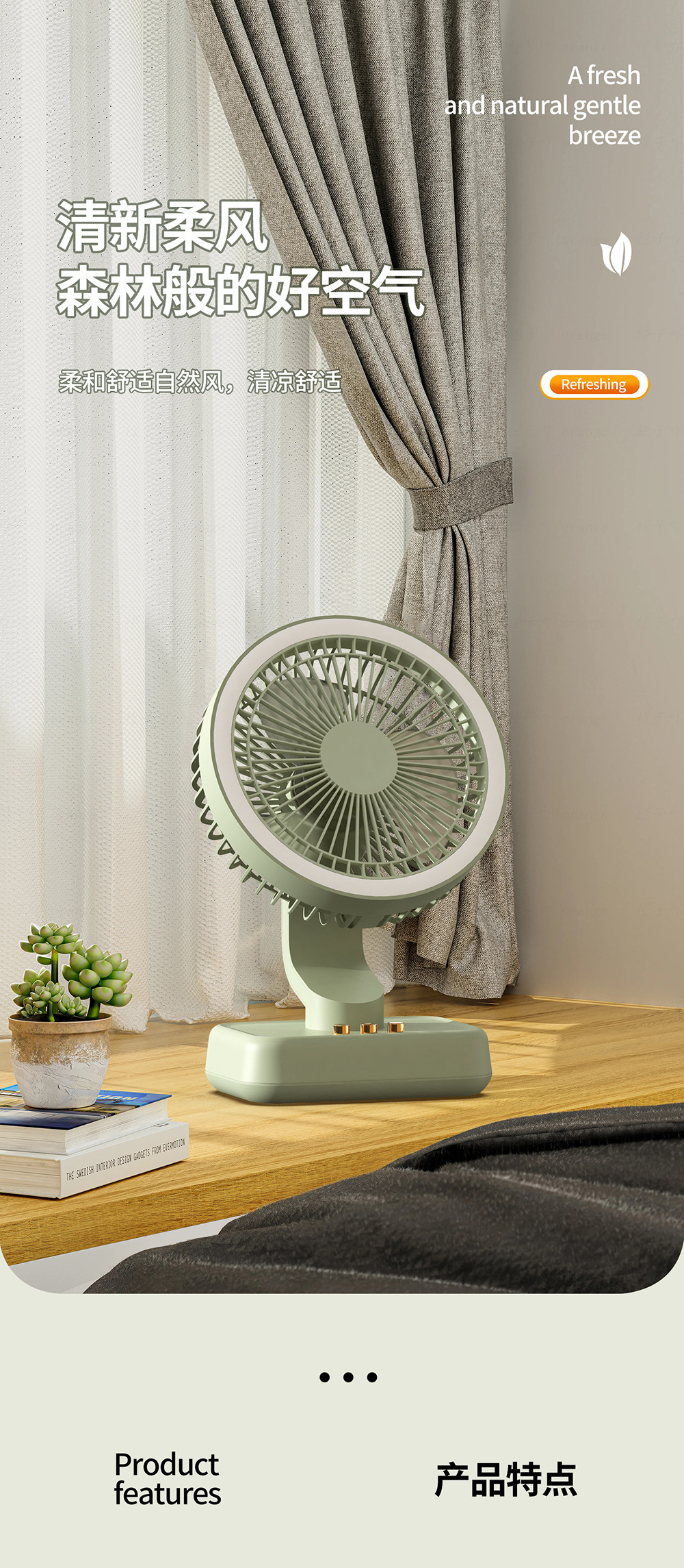 夏季新款便携台式小风扇家用大风力桌面风扇 夜灯迷你电风扇礼品
