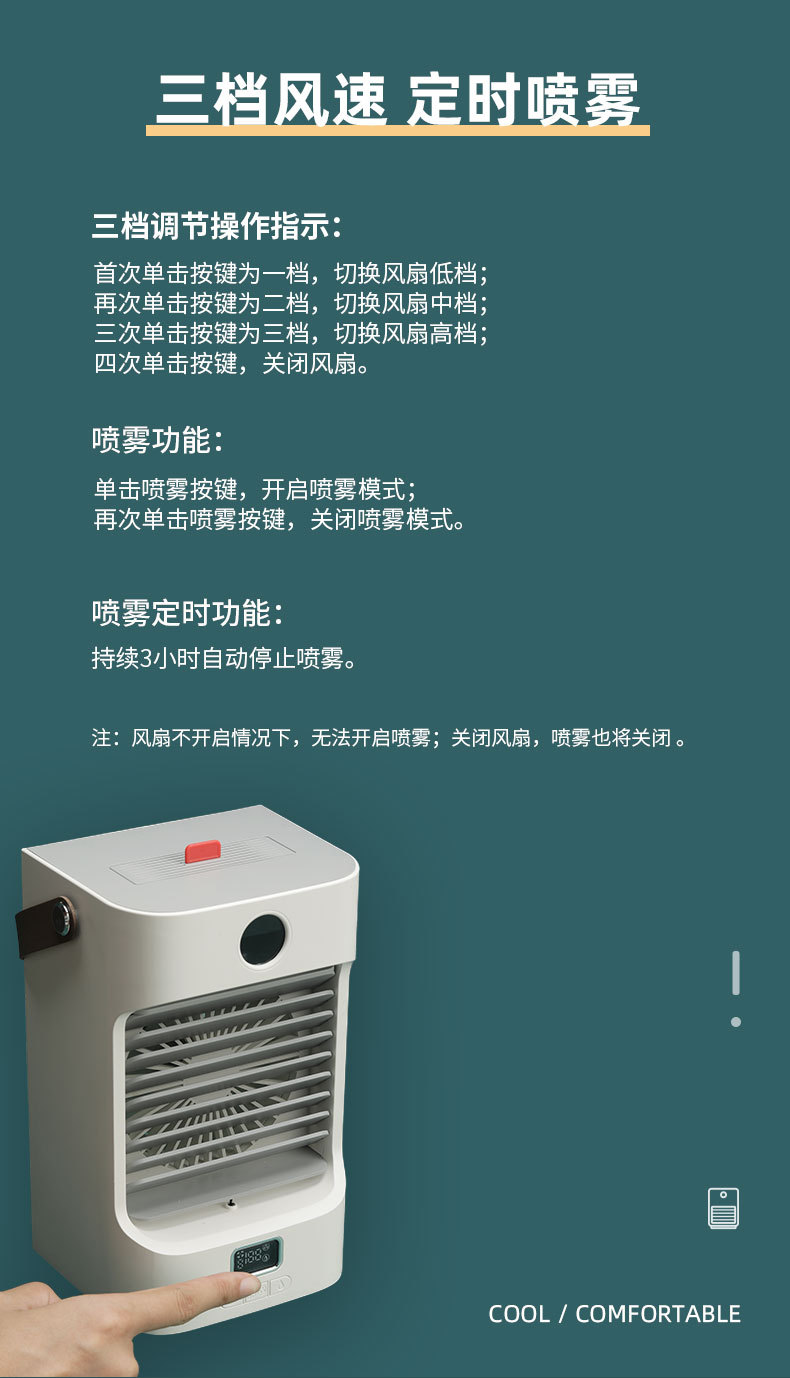 新款摇头喷雾风扇家用空调水冷桌面usb台式电风扇小型负离子净化