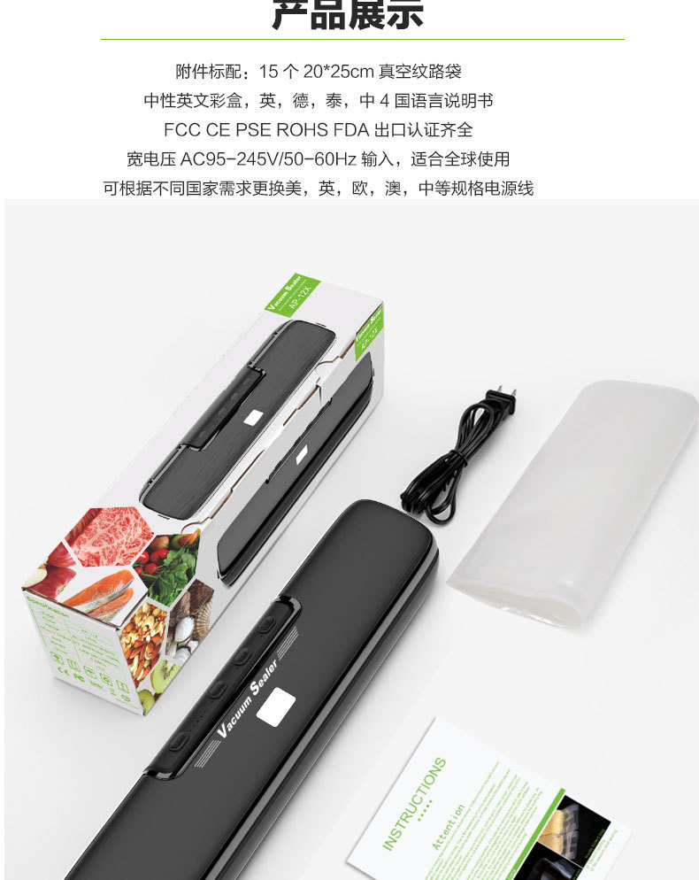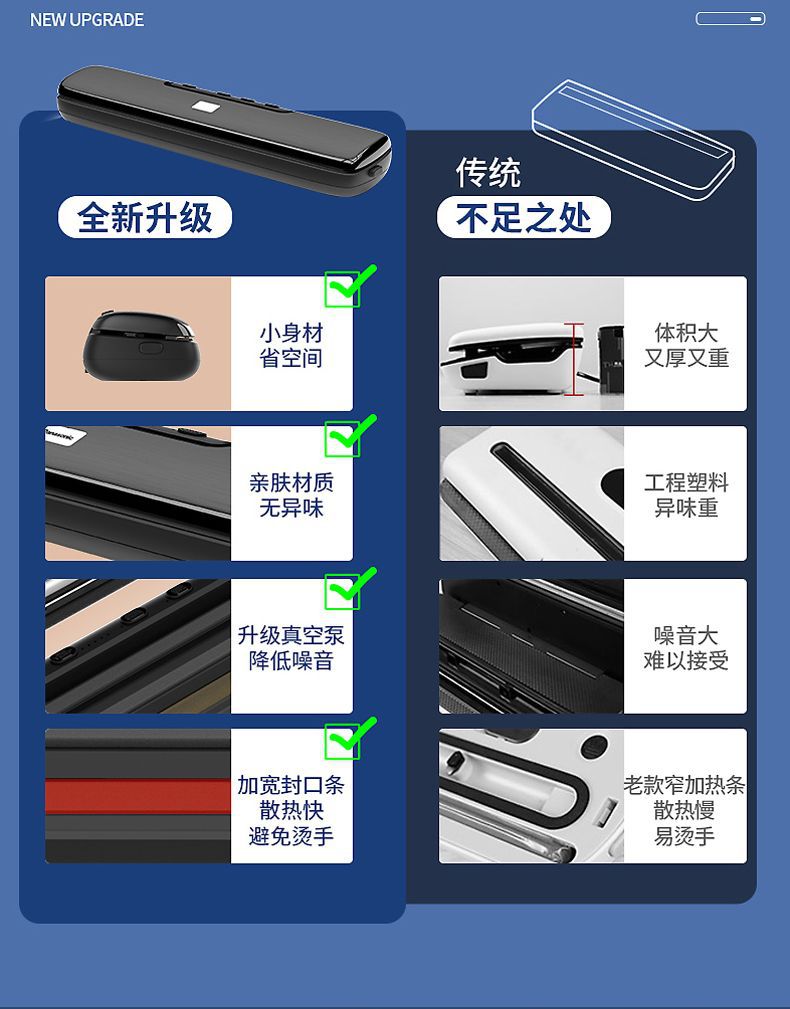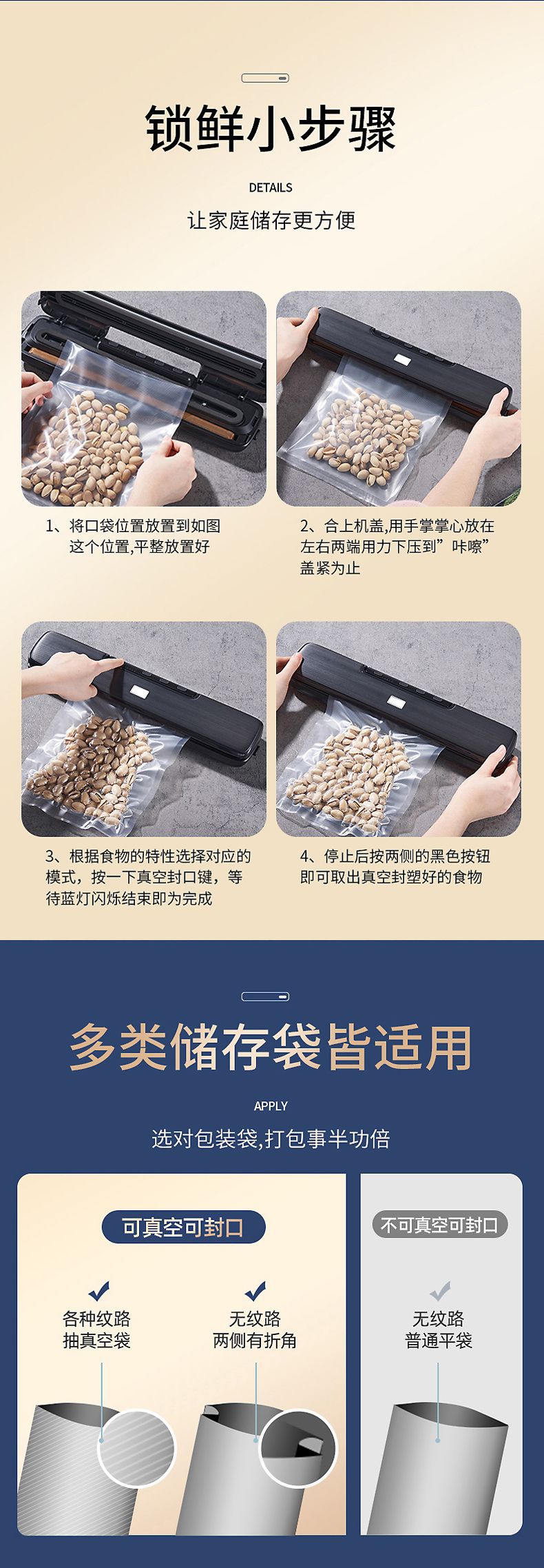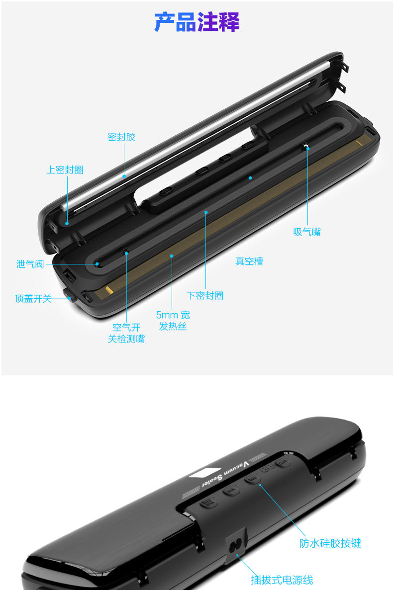 新款家用封口机厨房抽空保鲜机小型全自动密封机便捷式真空塑封机