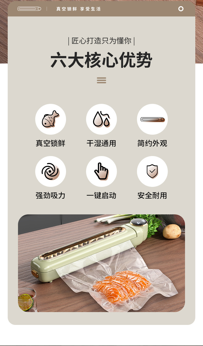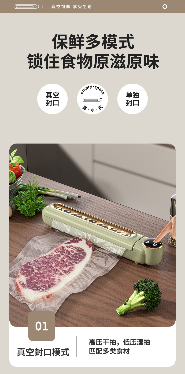 真空封口机小型家用食品保鲜塑封包装机全自动液晶干湿两用真空机