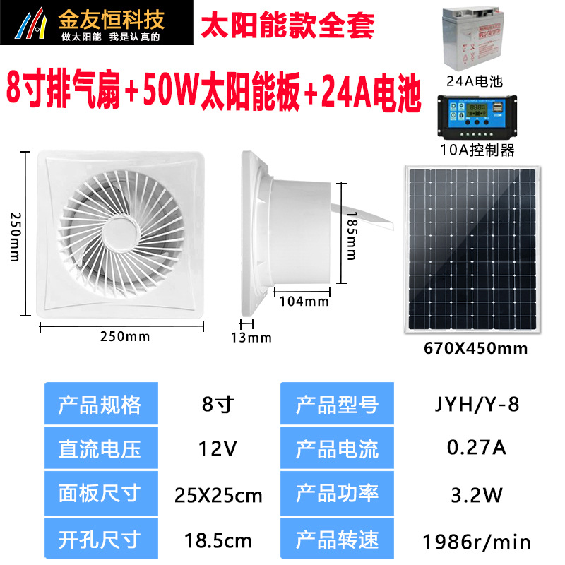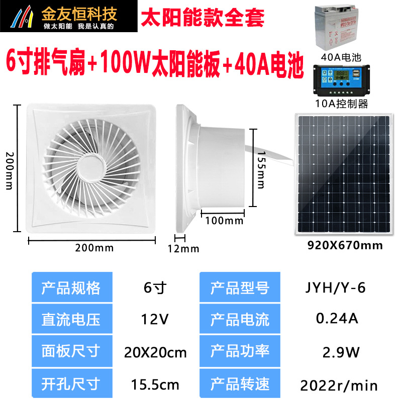 亚马逊外贸美国暴款太阳能12V排气扇家用窗式卫生间圆形换气风扇