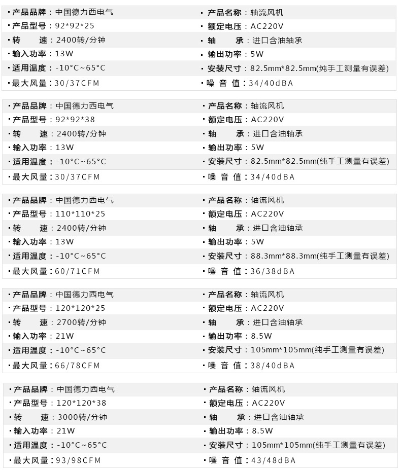 德力西轴流风机扇机柜交流风扇220V小型散热风扇工业机柜排风扇
