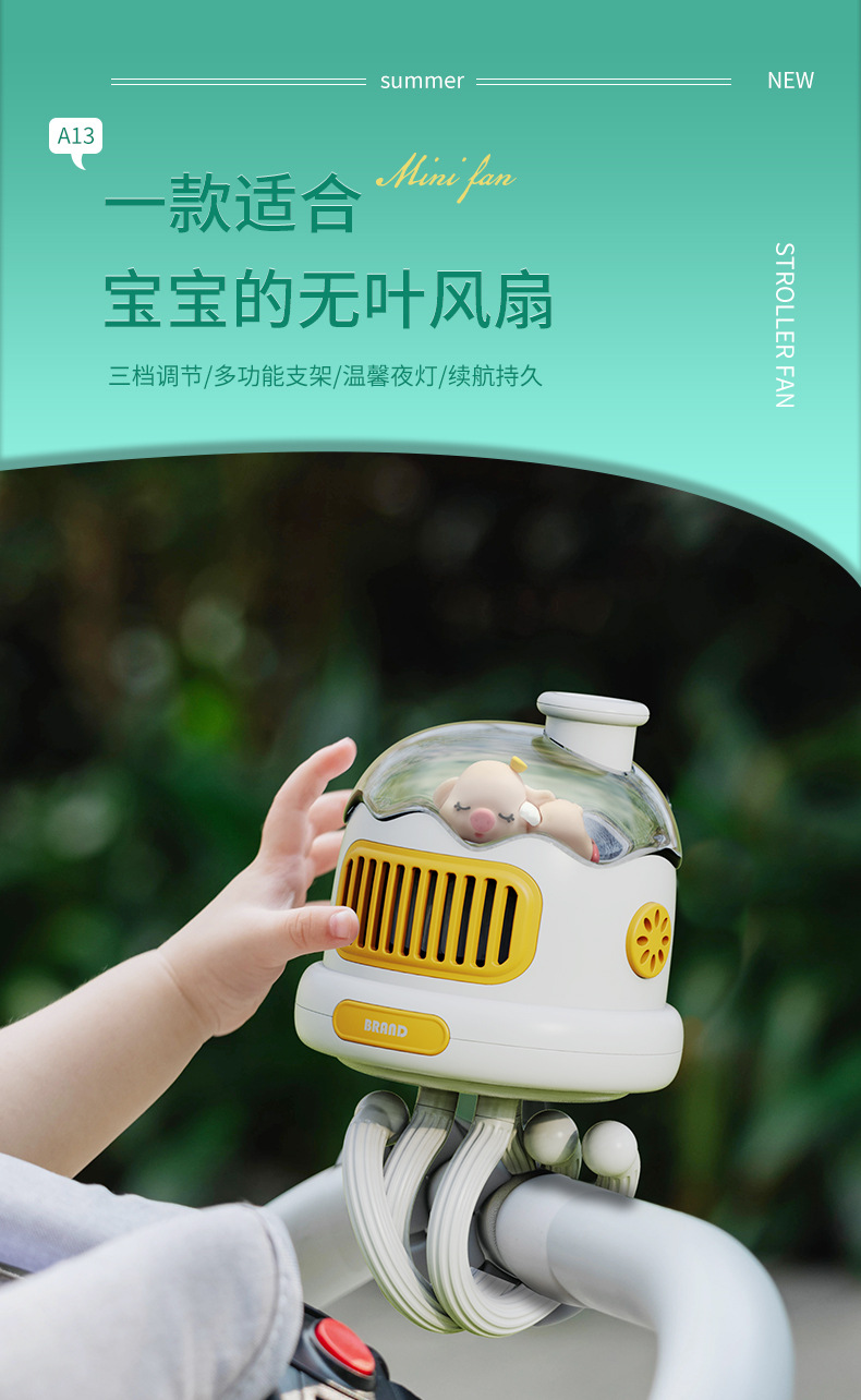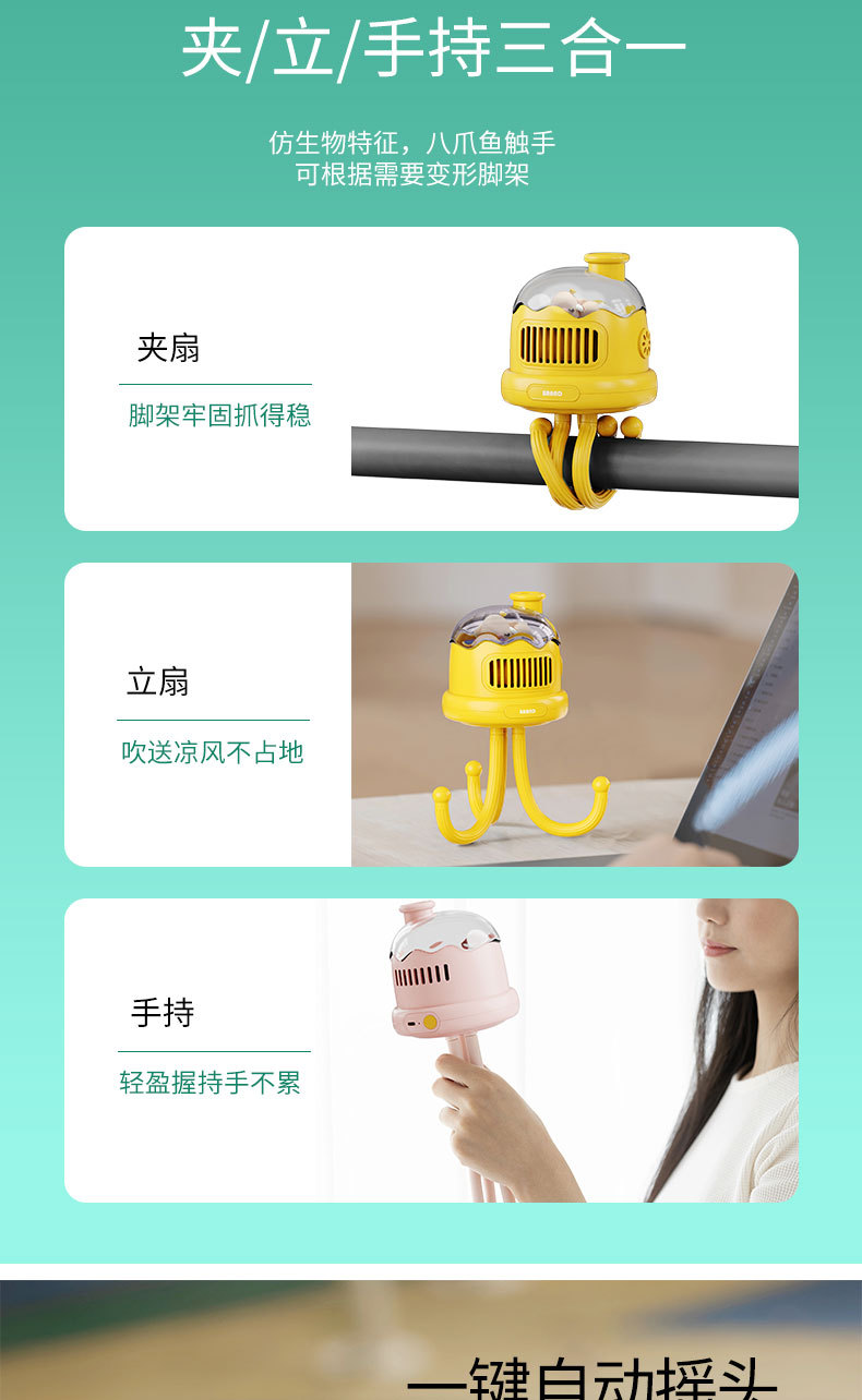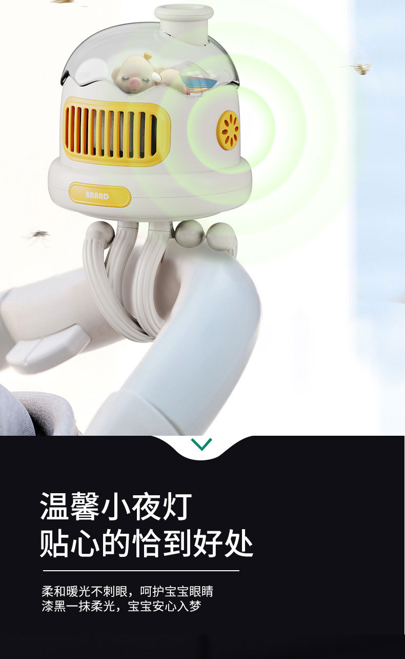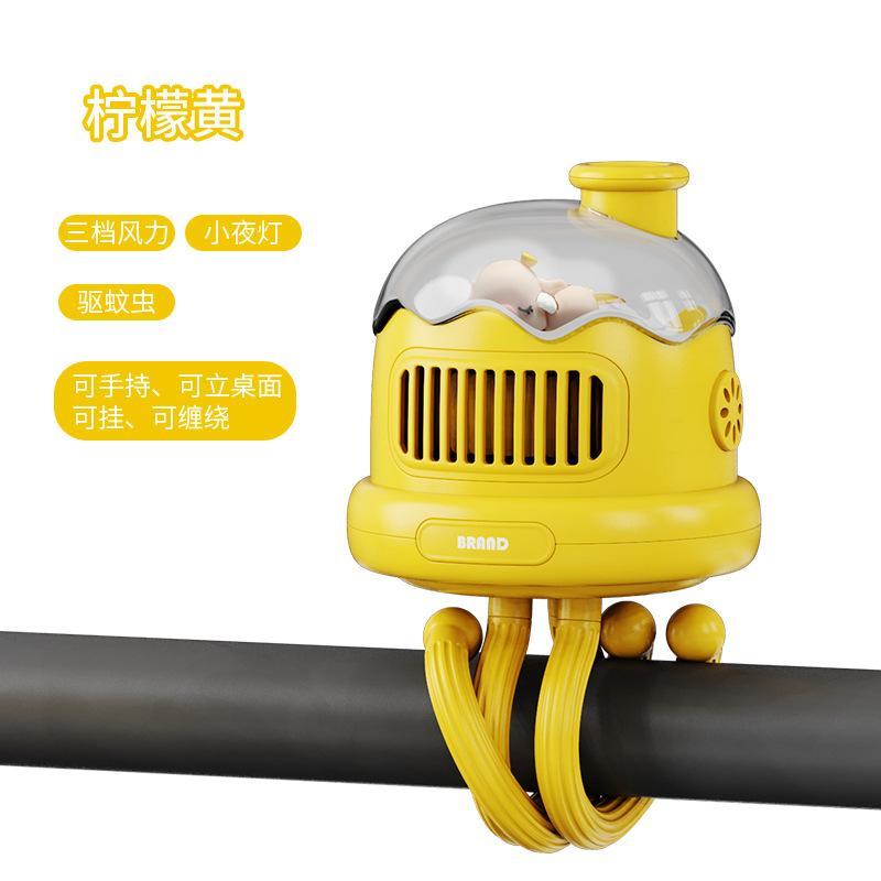 新品婴儿车风扇学生宿舍静音 usb夹式八爪鱼儿童手持推车风扇无叶