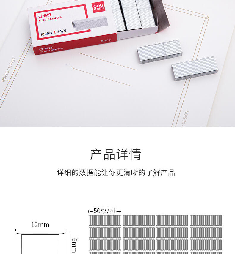 得力订书钉12号通用型订书针24/6书钉钉书针大号钉子厚层书订针