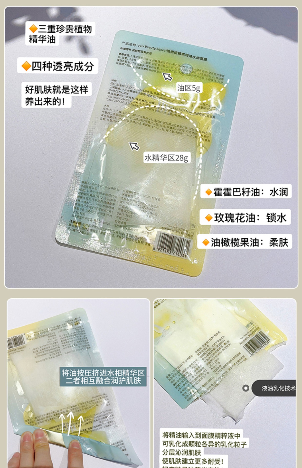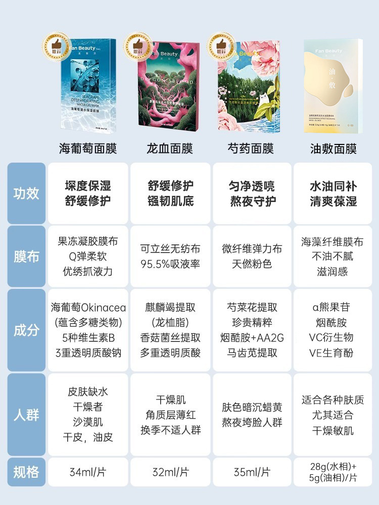 范冰冰同款!FanBeauty海葡萄凝水面膜龙血芍药油敷玻尿酸补水