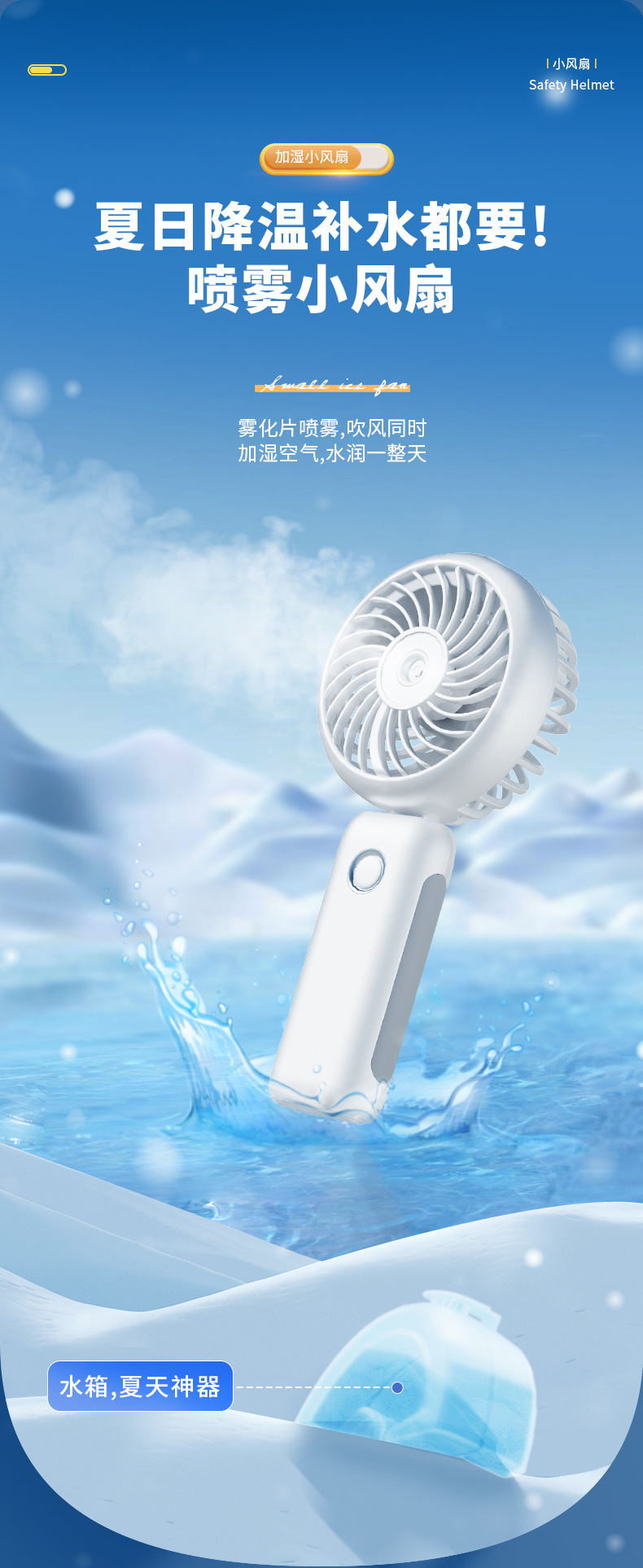 喷雾风扇新款批发手持折叠充电学生便携式随身桌面静音加湿小风扇