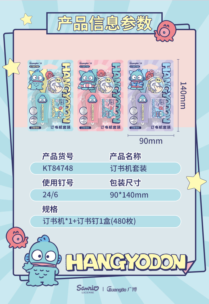广博三丽鸥 丑鱼订书机套装 学习家用mini便携小型订书机订书针