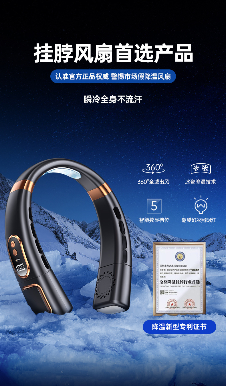 新款便携式挂脖风扇USB手持静音小电风扇多功能无叶迷你跨境2023