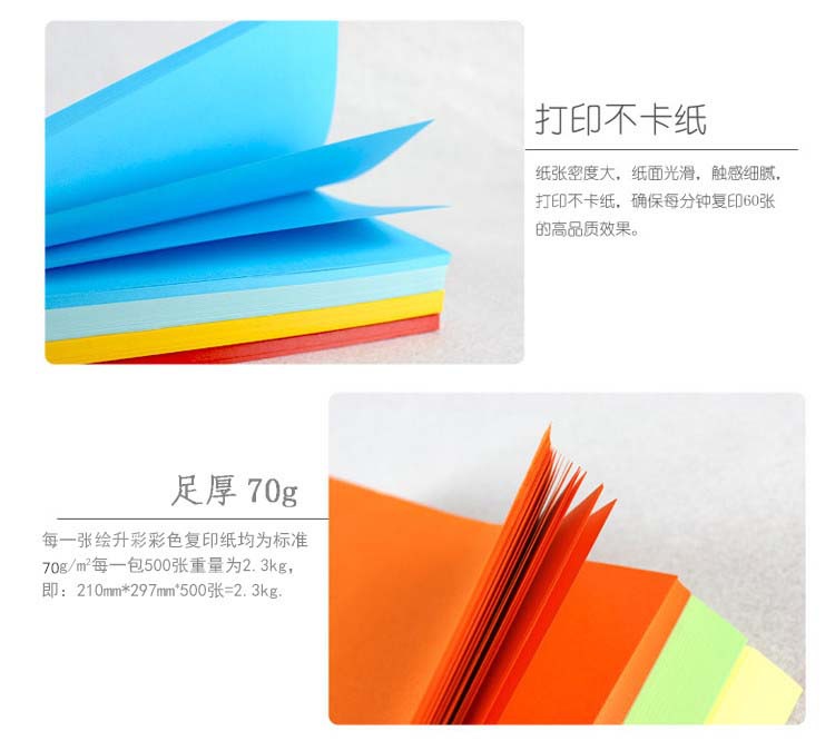 70g彩色A4复印纸批发 打印纸 彩纸A3 A5儿童手工折纸专用纸70克