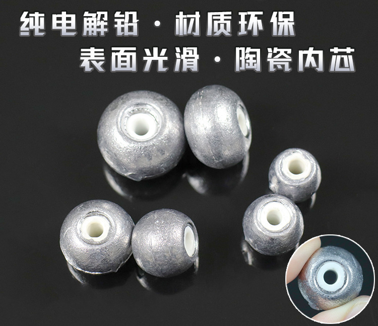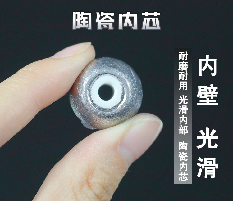 厂家批发渔具空心铅坠瓷心铅坠圆形穿孔陶瓷铅坠鱼坠塑芯磁环铅坠