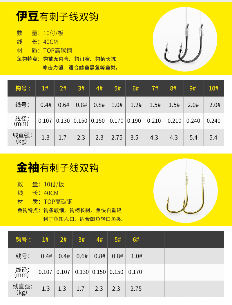千手锋子线成品双钩 鱼钩绑好成品子线鱼钩金袖子线 伊势尼批发
