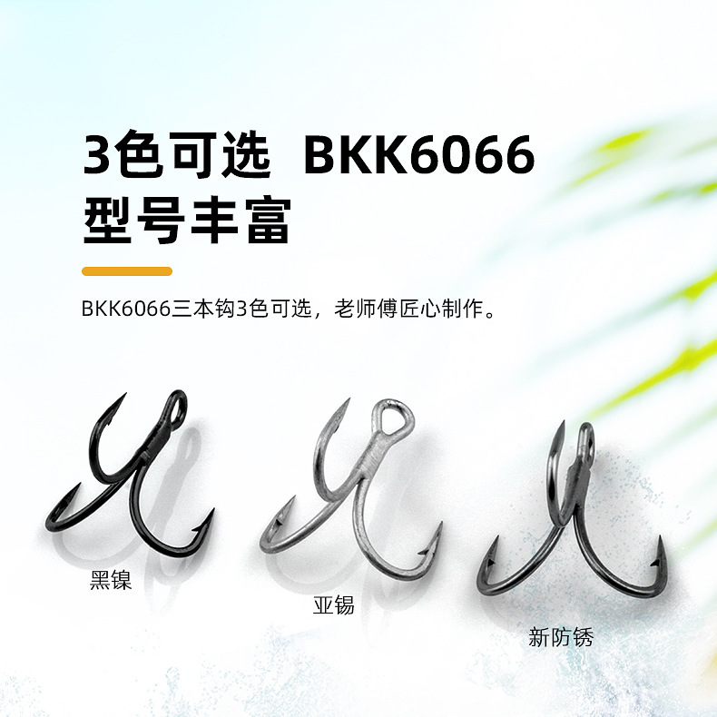 【12枚】乐鑫黑金刚三倍加强鱼钩新防锈防腐蚀BKK6066三本钩批发