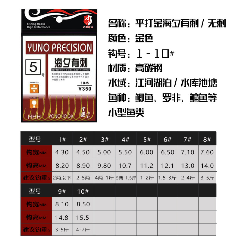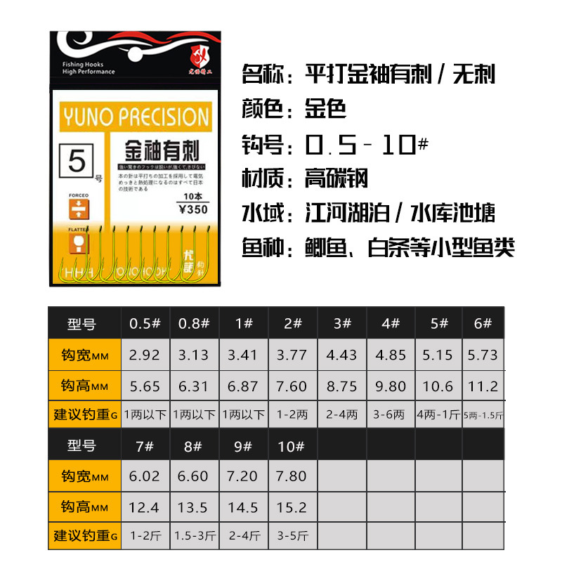 尤诺精工伊势尼伊豆新关东海夕丸世溪流袖钩散装鲫鱼鲤鱼草鱼鱼钩