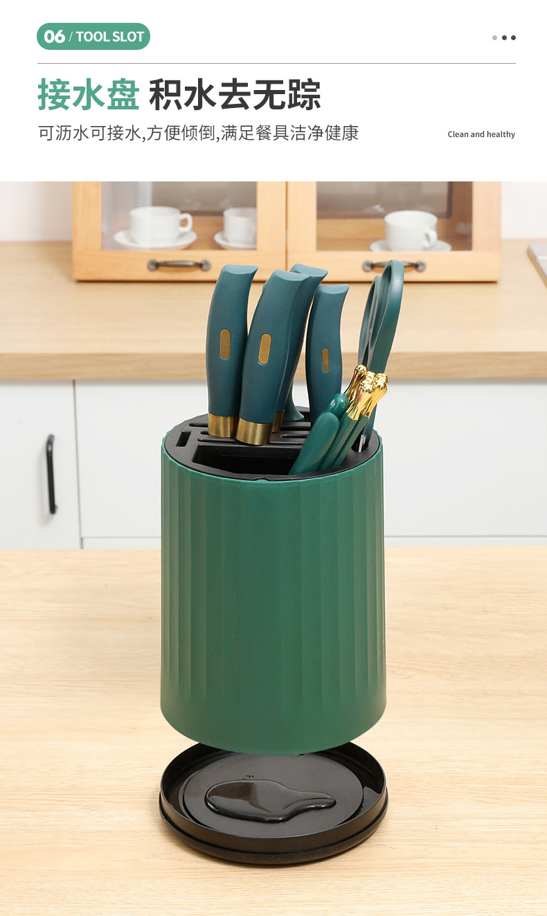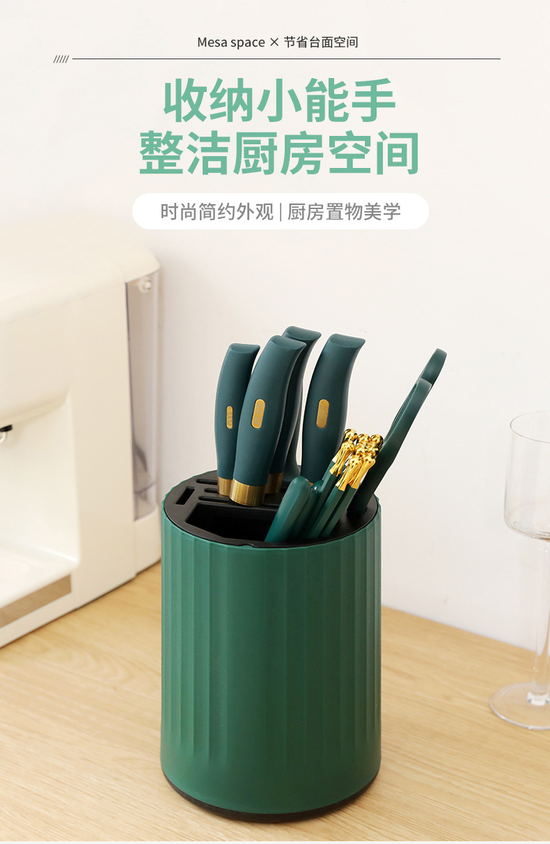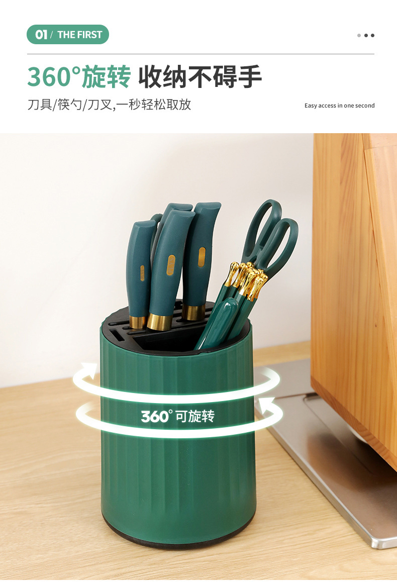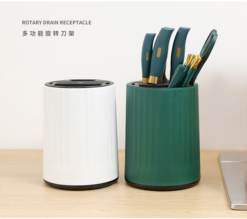 家用厨房旋转刀架 刀具置物架筷子餐具收纳筒多功能刀架筷桶一体