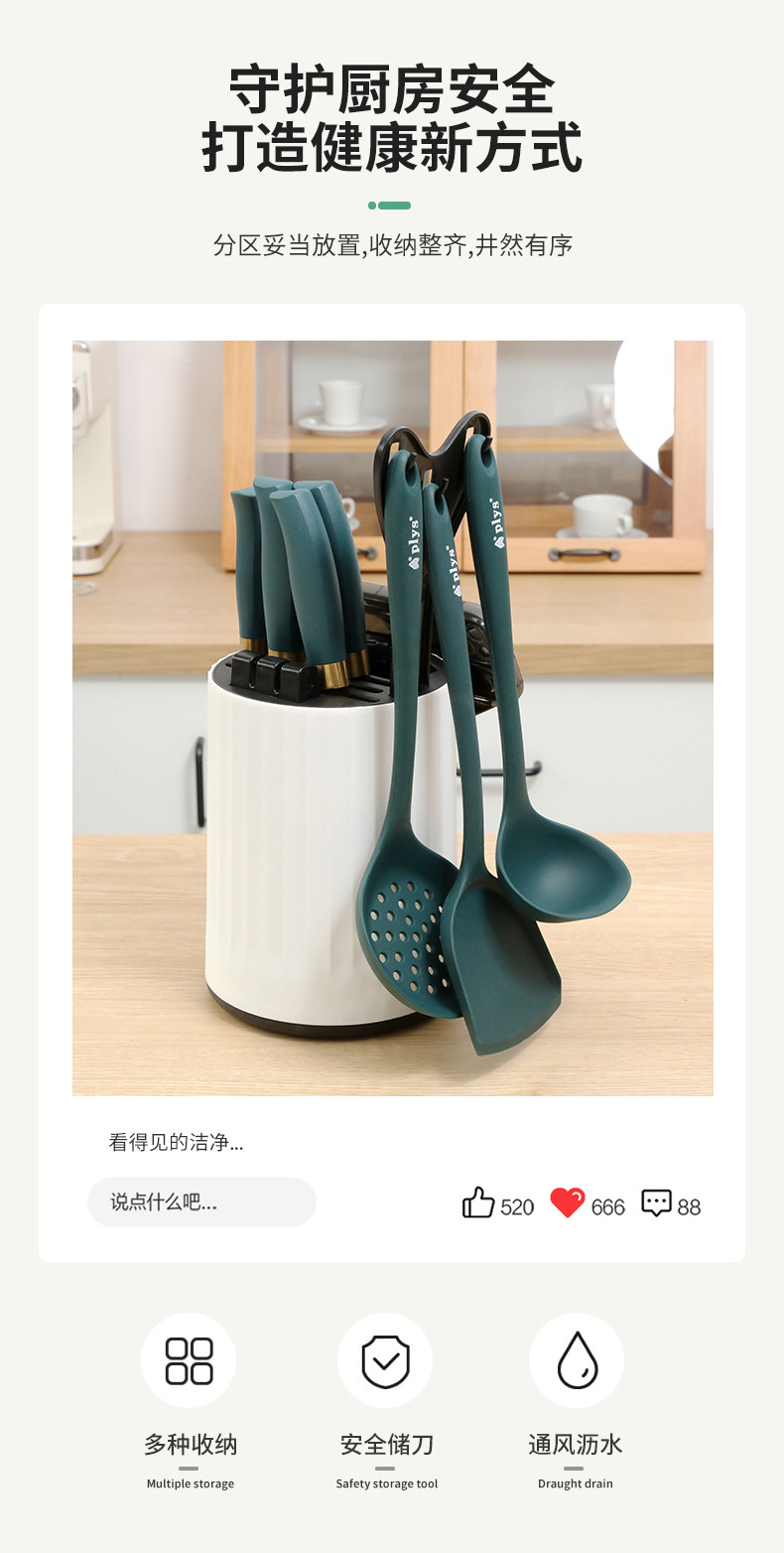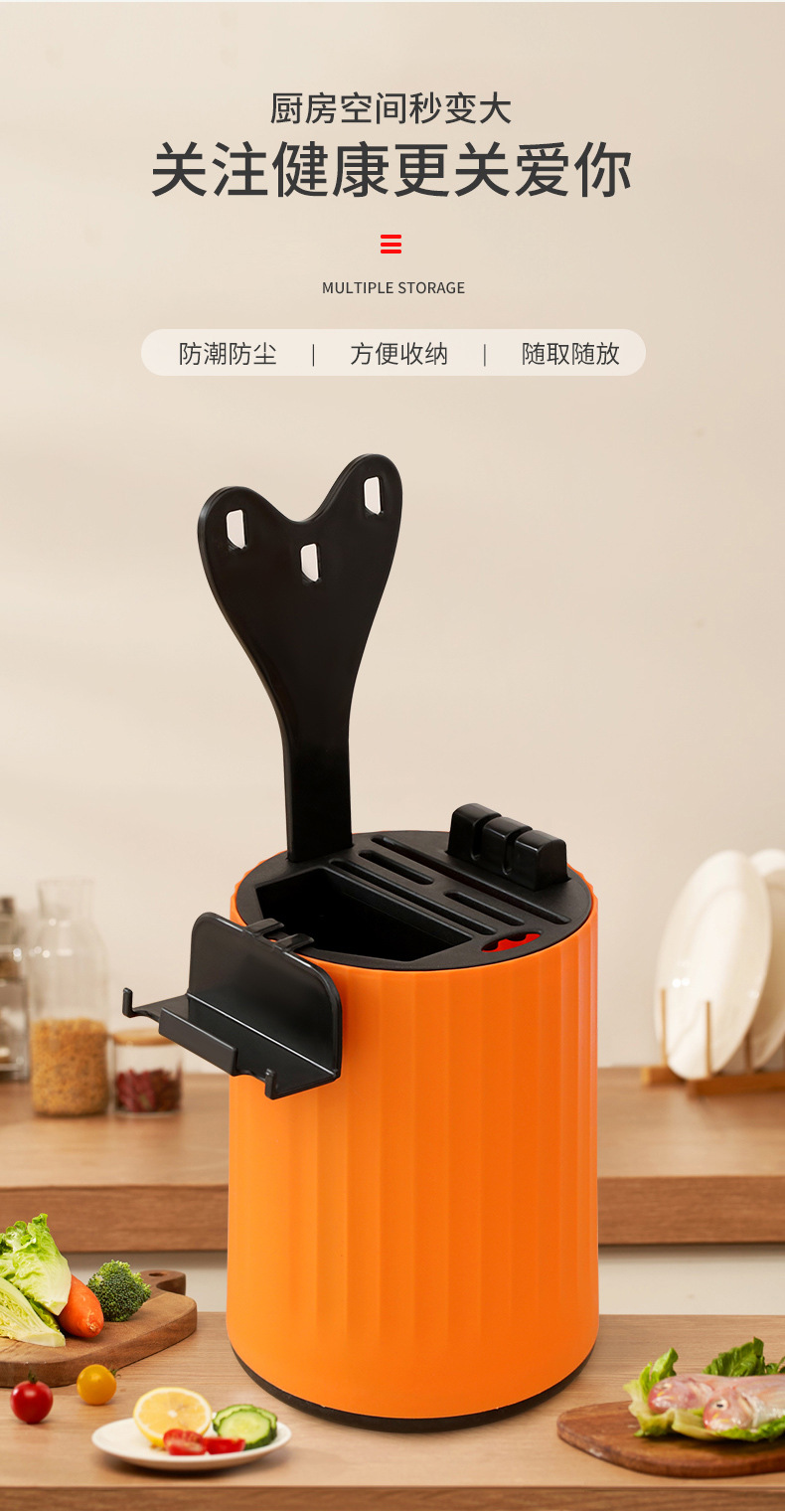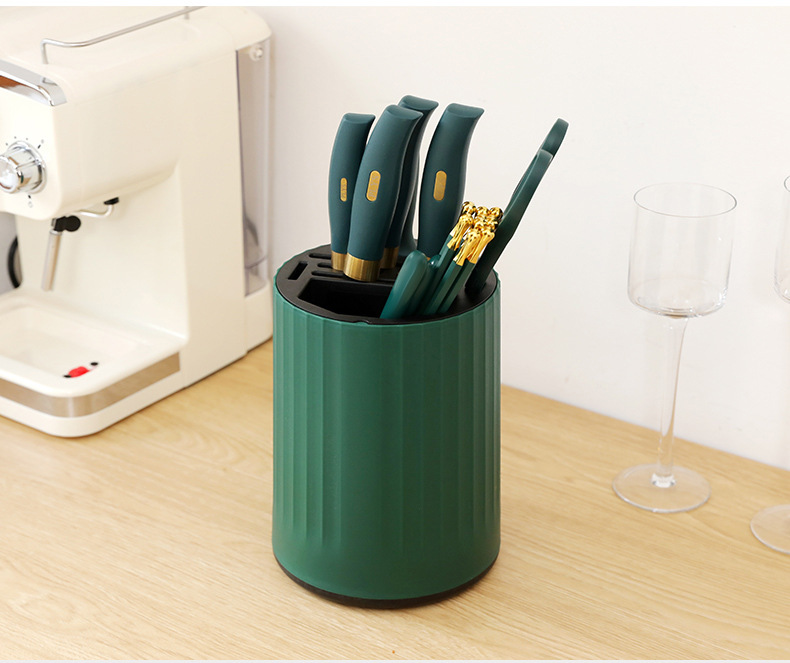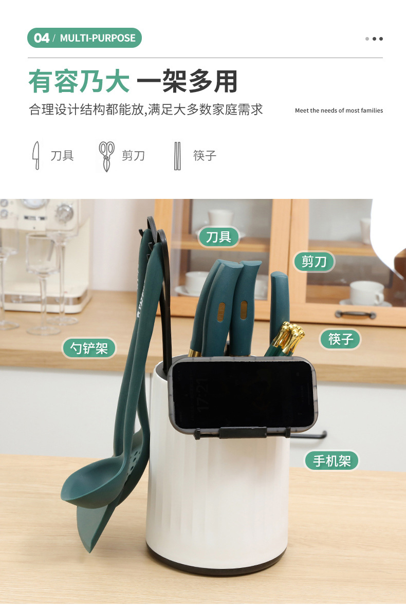 家用厨房旋转刀架 刀具置物架筷子餐具收纳筒多功能刀架筷桶一体