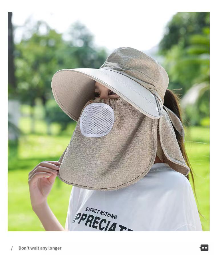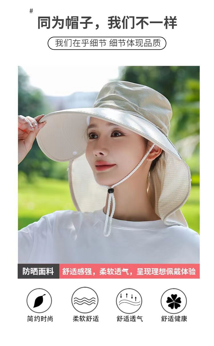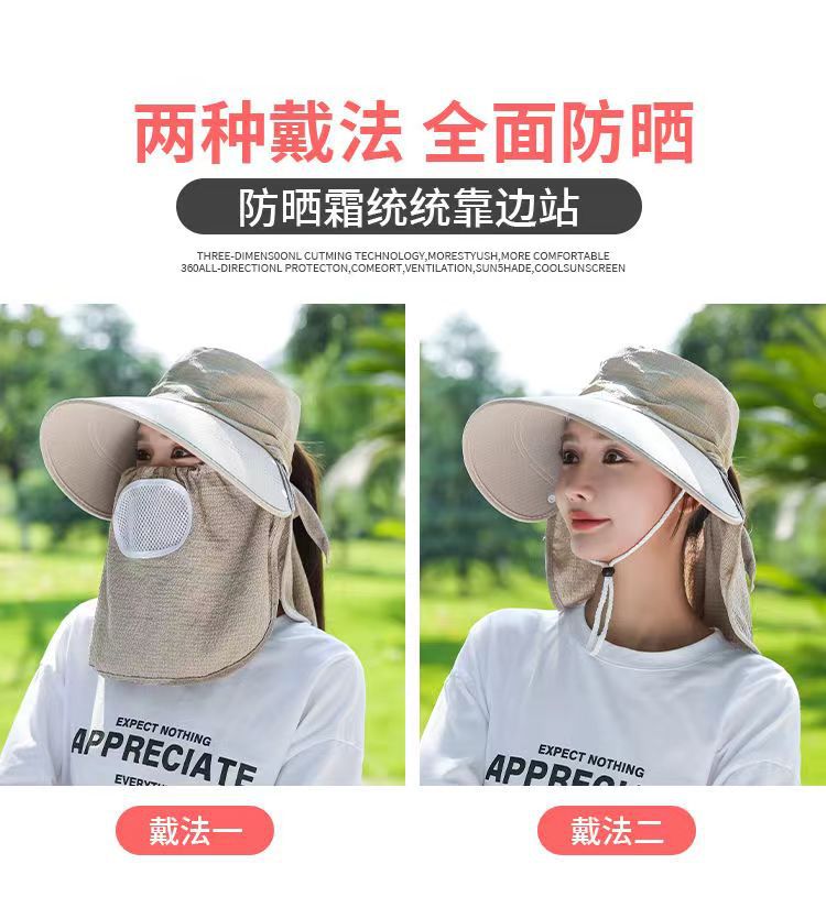 帽子女太阳帽防紫外线遮脸透气遮阳渔夫帽夏季钓鱼帽大帽沿防晒帽