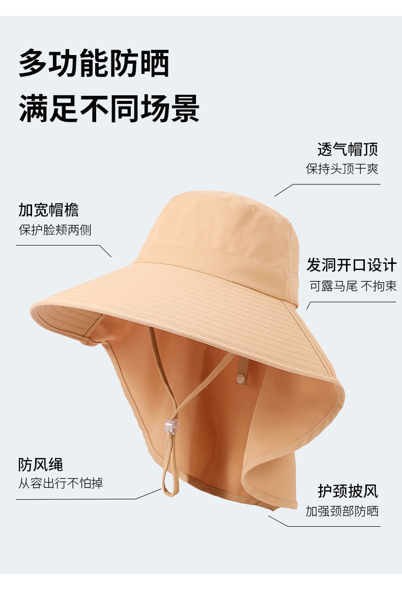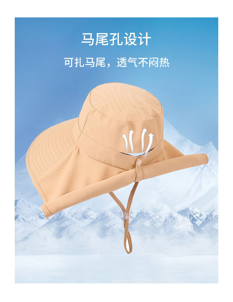 夏季防晒帽子男女户外登山大帽檐渔夫帽露马尾防紫外线钓鱼遮阳帽