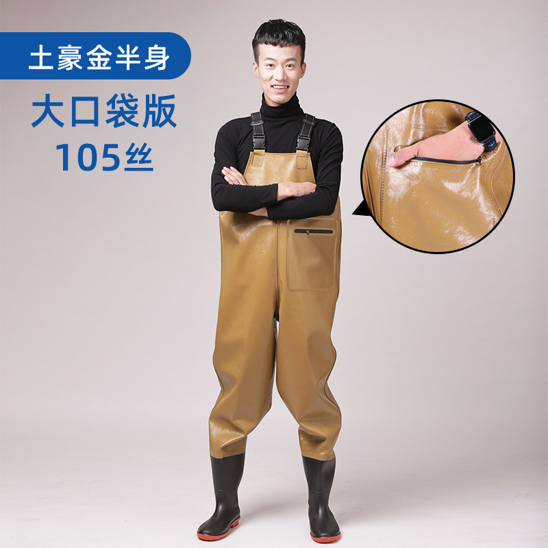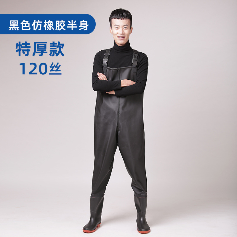 雨裤钓鱼裤防水皮叉半身连体水裤男抓捕鱼裤加厚连体下水裤批发