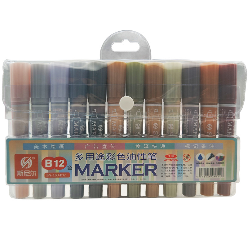 斯尼尔记号笔单18色24色油性笔大双头单色记号笔 粗双头POP马克笔