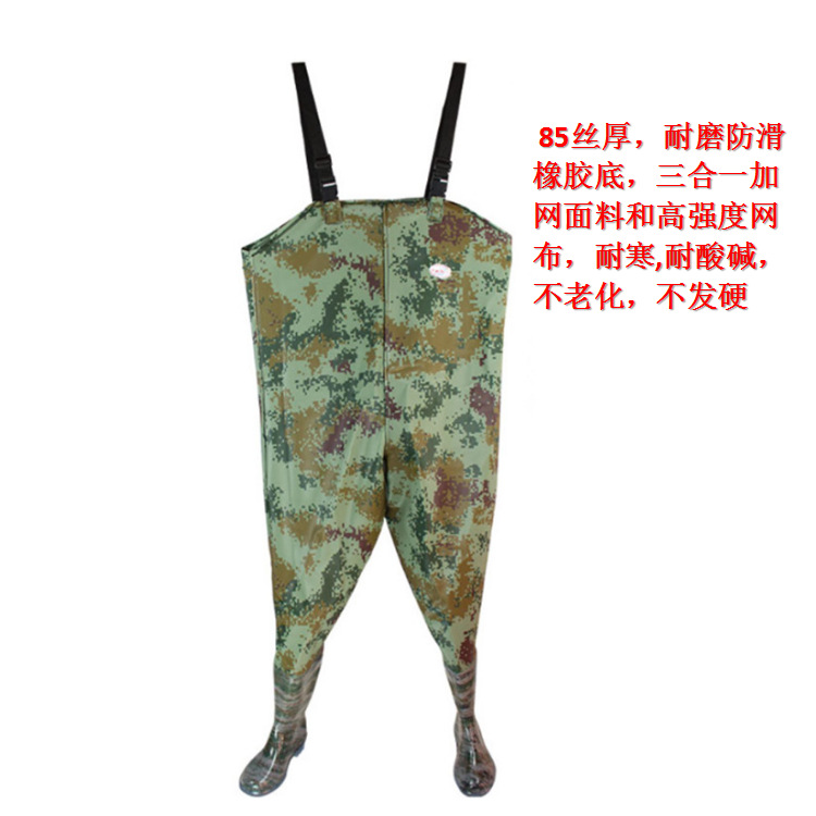 下水裤 涉水裤迷彩钓鱼裤防水服下水橡胶捕鱼钓鱼裤男裤批发厂家