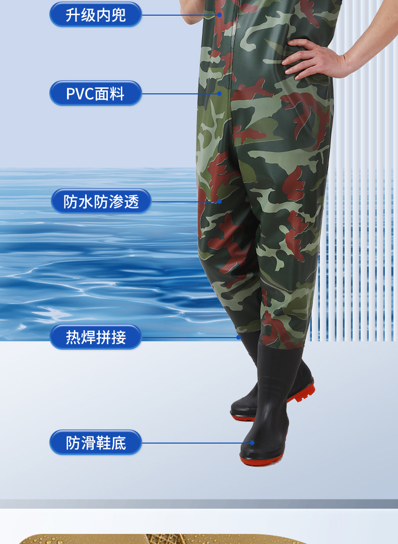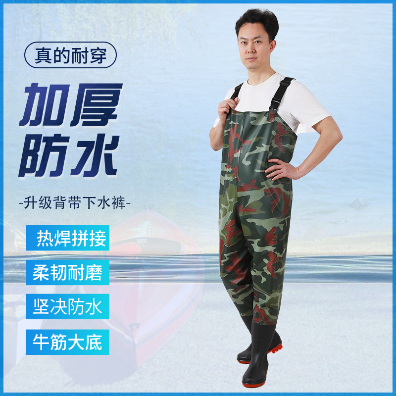 批发半身下水雨裤工作服连体防水裤男女捕鱼半身涉水裤