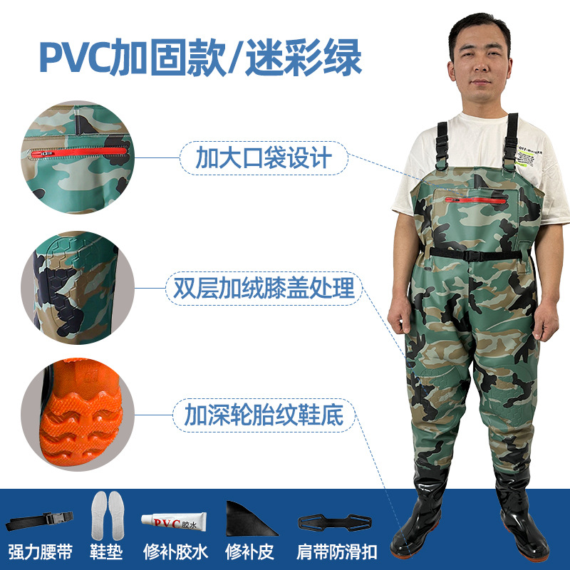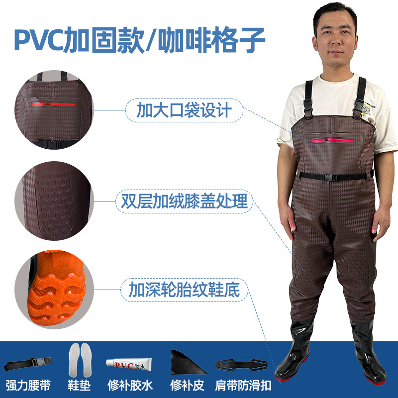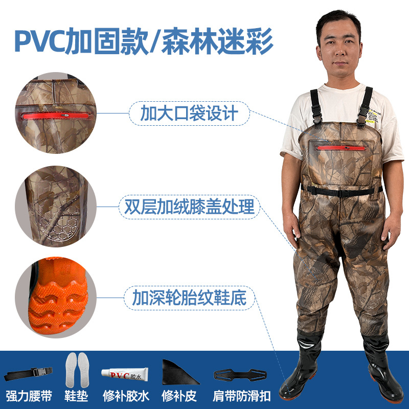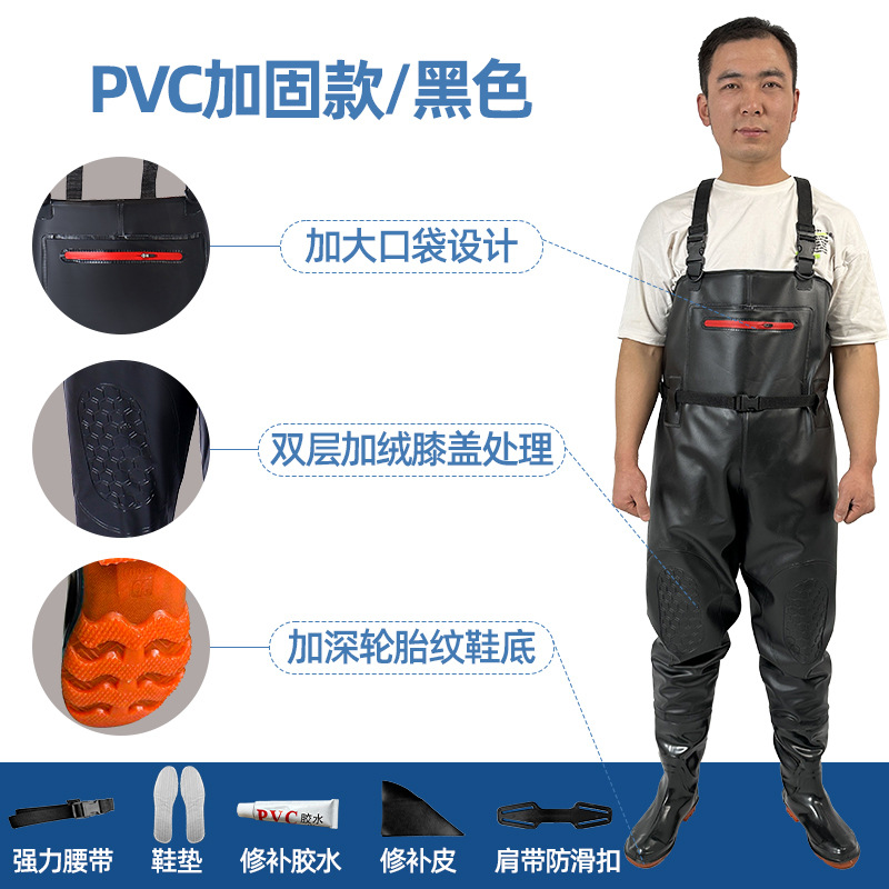 下水裤连体防水裤半身雨裤加厚双护膝涉水裤背带皮叉裤捕鱼裤直销