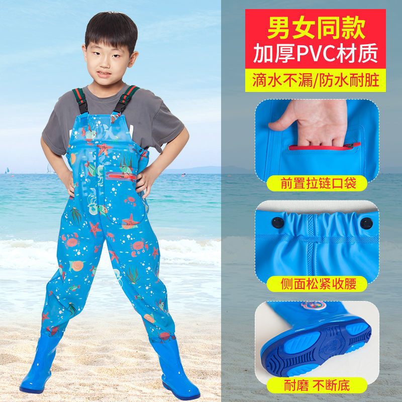 儿童玩水服下水裤赶海连体防脏防护服幼儿园玩沙捕鱼男女孩衩雨鞋
