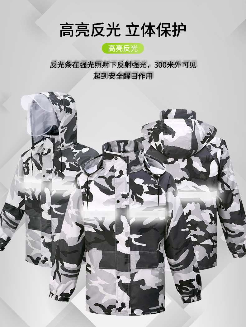 灰花迷彩雨衣分体套装雨裤时尚摩托车骑行外卖成人防暴雨钓鱼透气