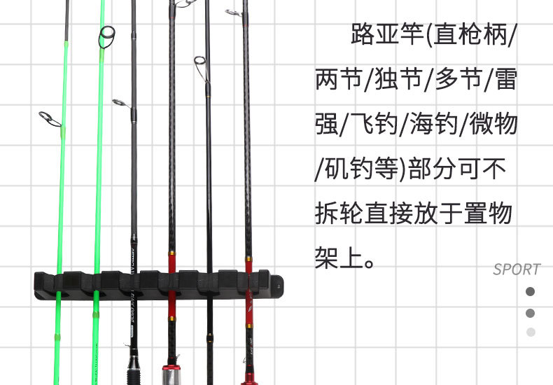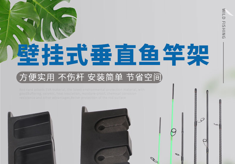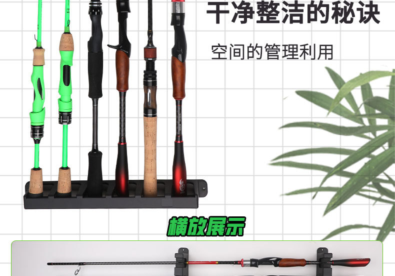 壁挂式垂直鱼竿架鱼竿展示架路亚竿收纳架抄网手竿收藏架鱼竿支架