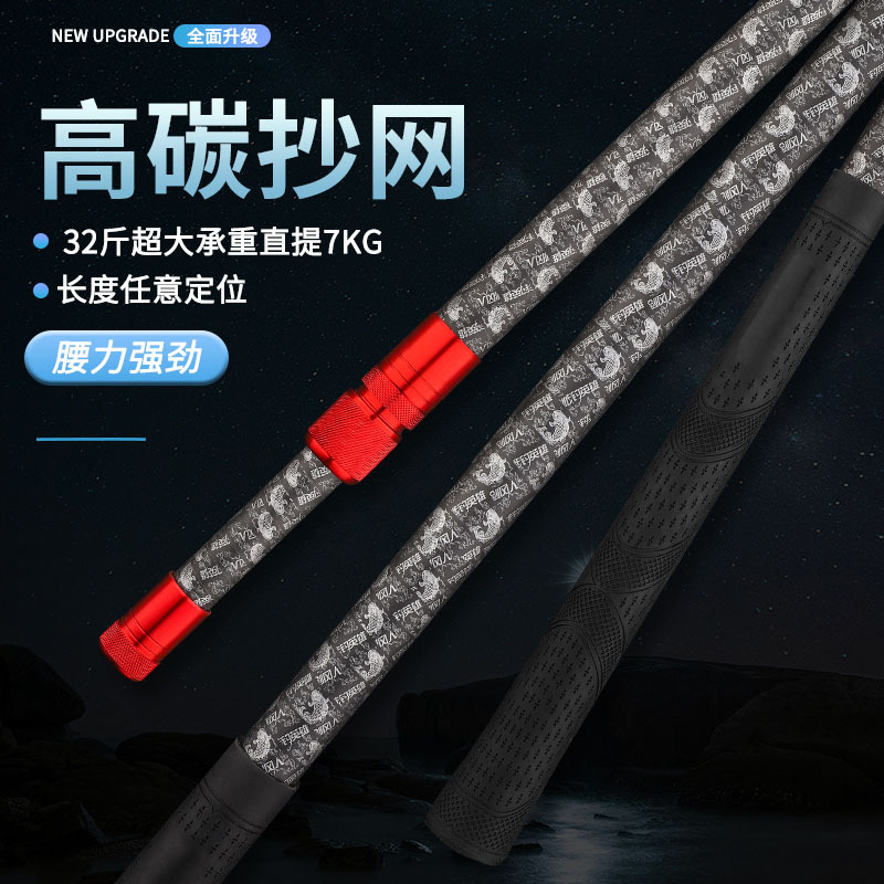 碳素抄网杆支架竿批发 轻硬抄网头抄鱼捞鱼钓鱼竿炮台支架竿