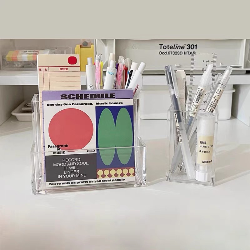 跨境透明笔筒高颜值办公桌面收纳盒大容量多功能高档书房摆件批发