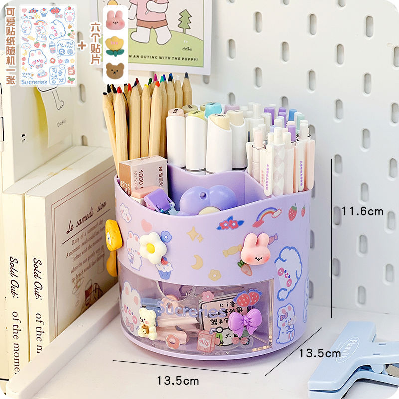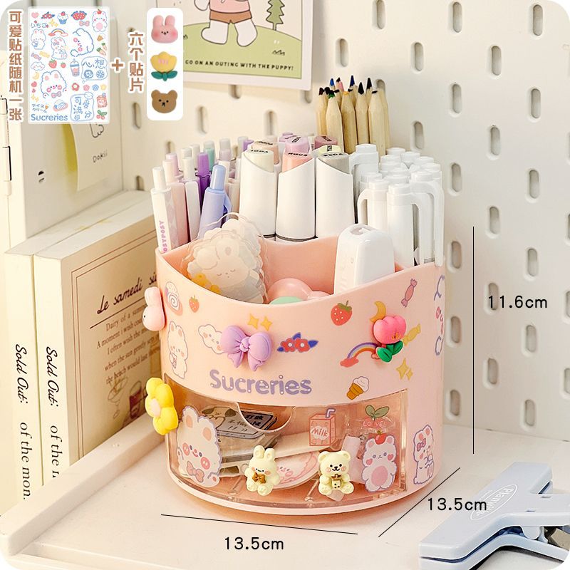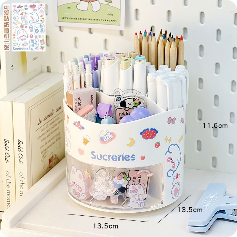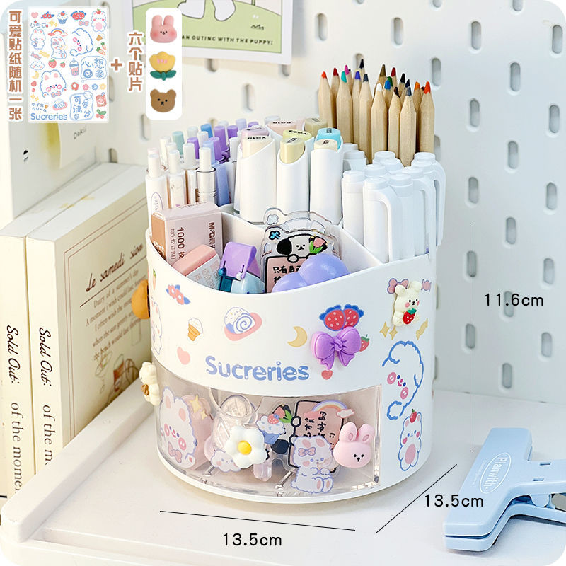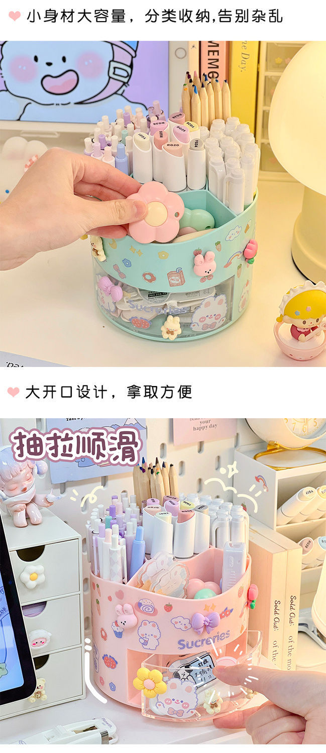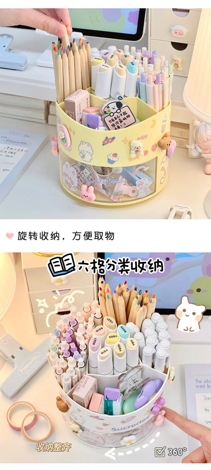 旋转笔筒大容量分格文具整理收纳盒学生桌面笔架置物架多功能简约