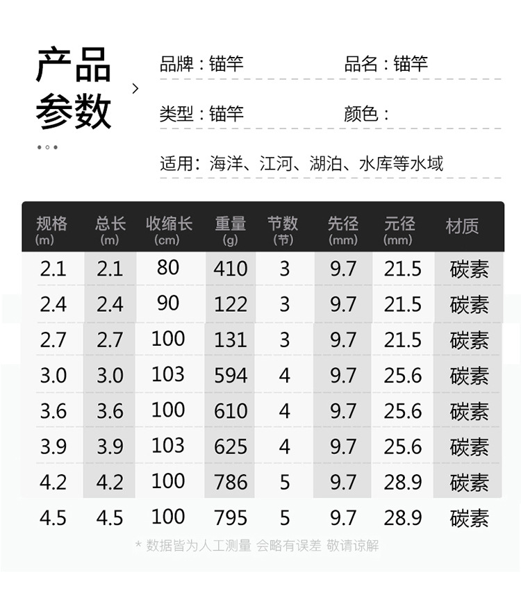 渔具大导环纯碳远投竿锚杆4.5米 4.2米锚鱼竿远投竿可改可视锚竿