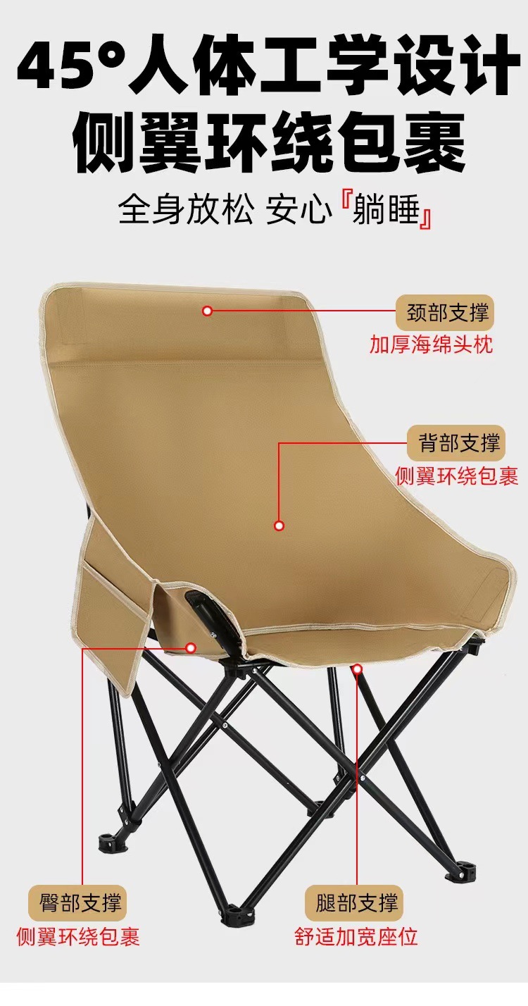 户外折叠椅露营椅子便携式高背月亮椅办公室躺椅午休沙滩椅钓鱼椅