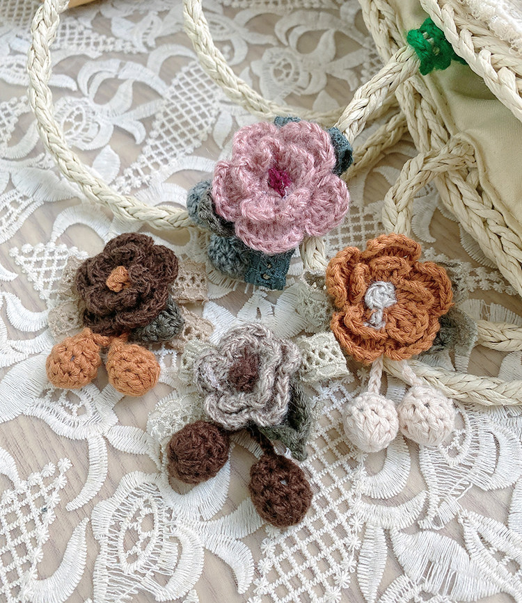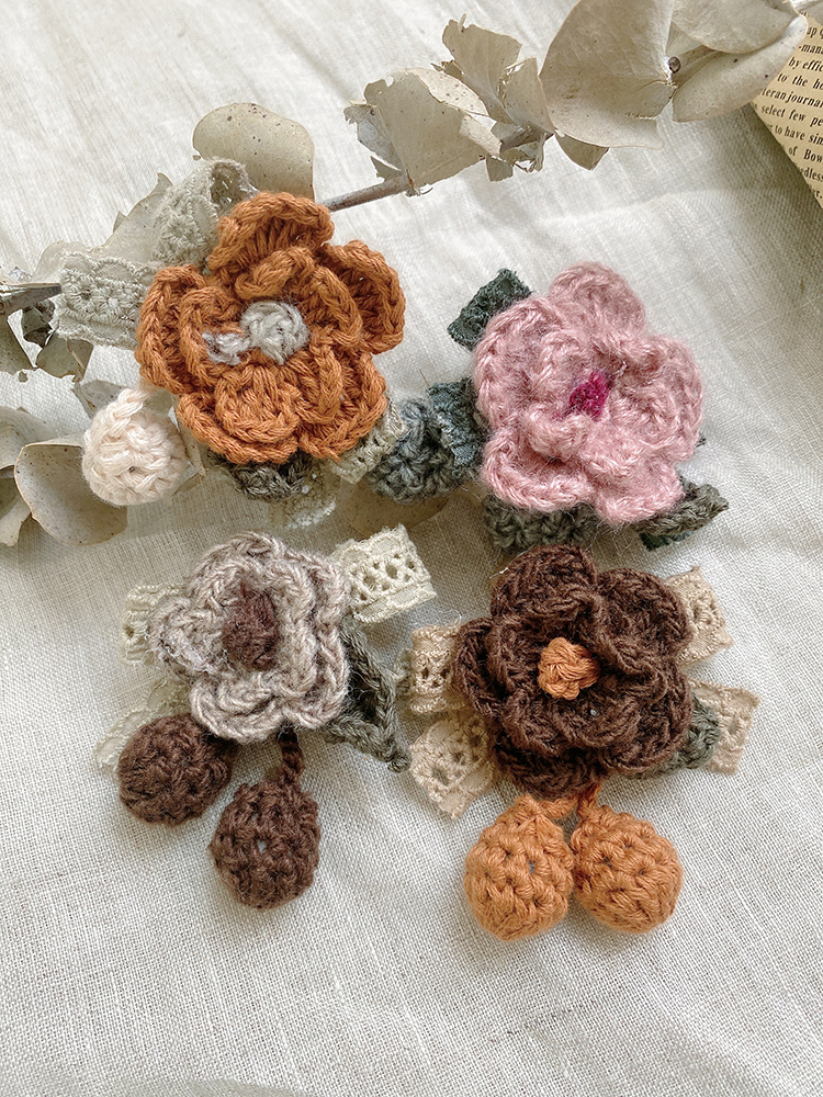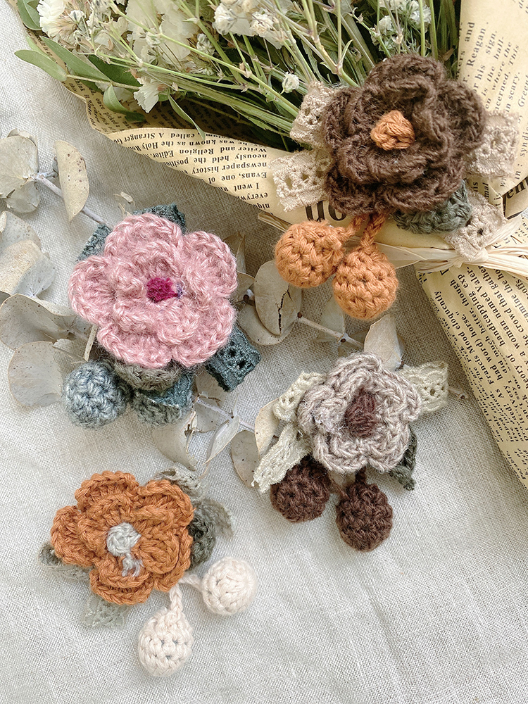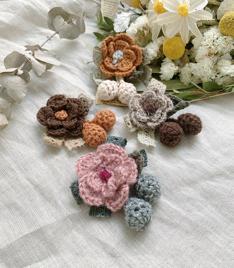 胸针百搭花卉可爱毛线胸花植物配饰花朵别针钩花装饰日系甜美布艺