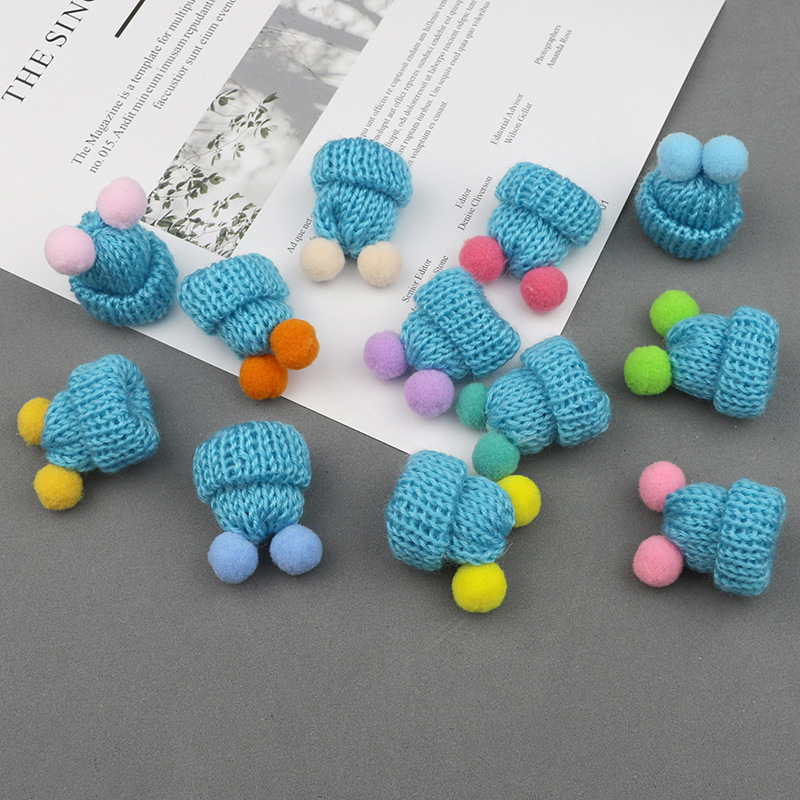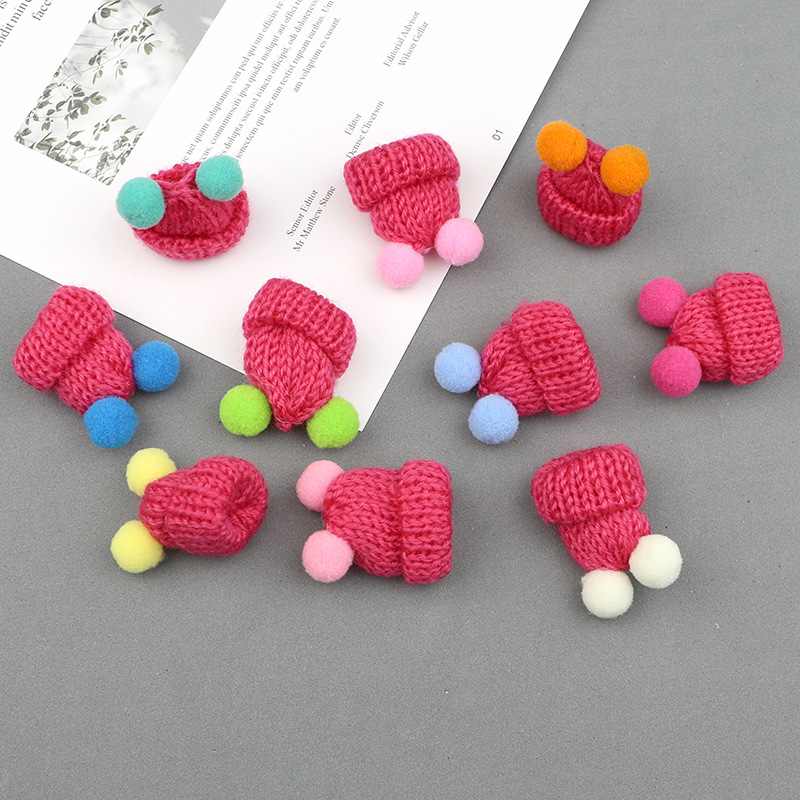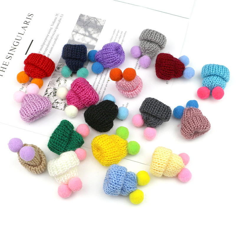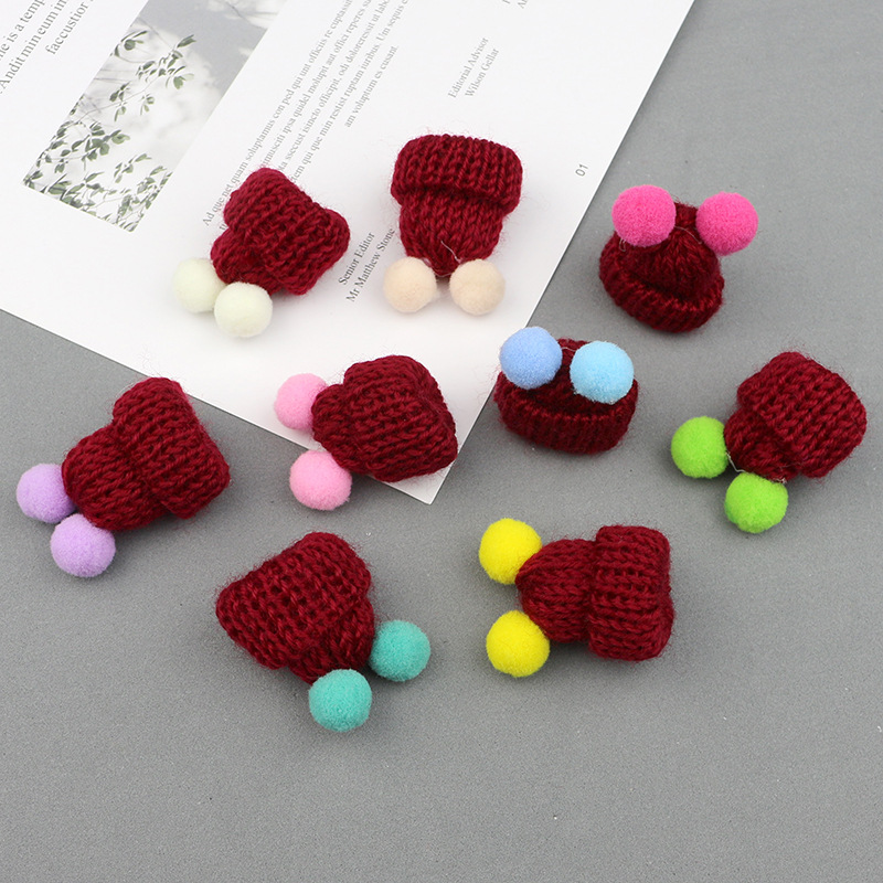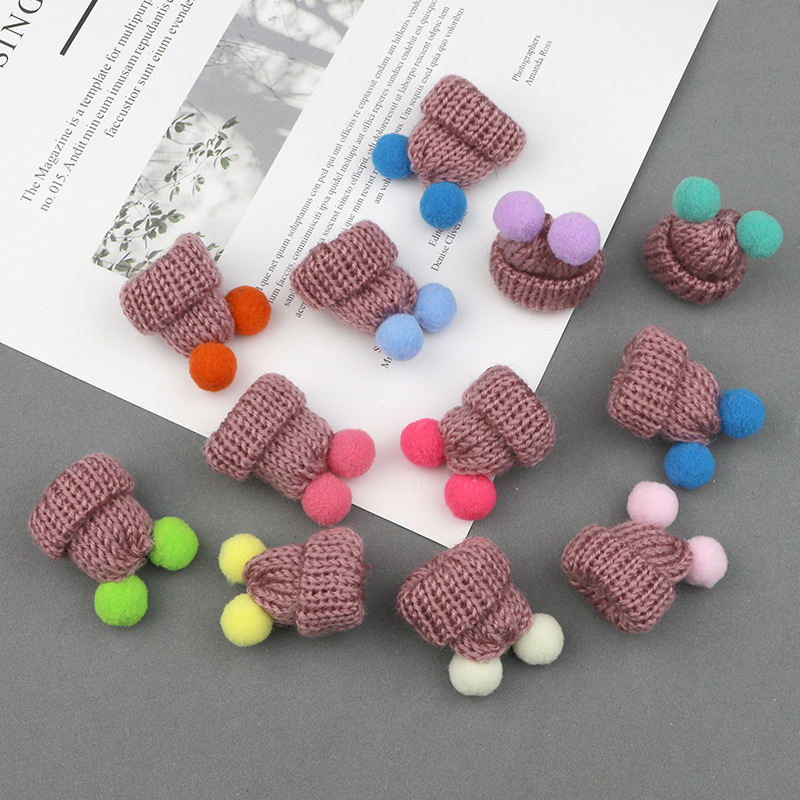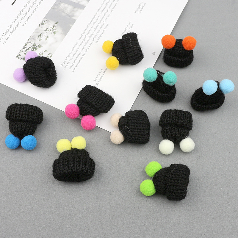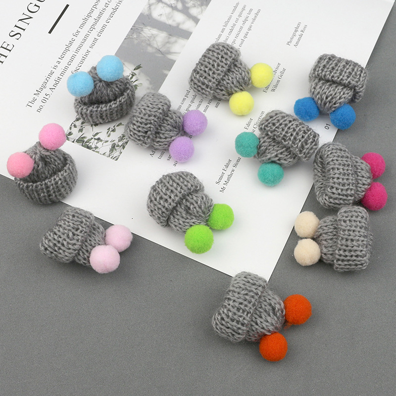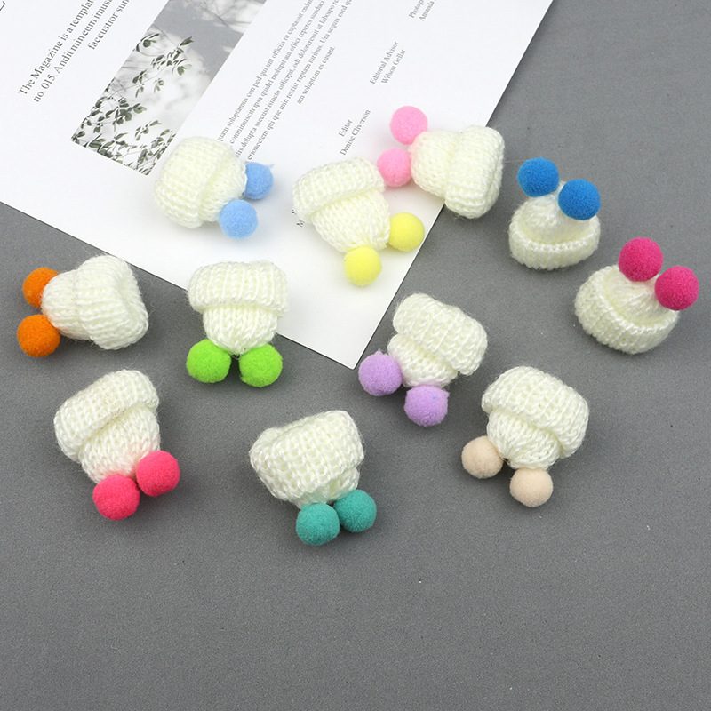 现货韩版针织毛线双绒球迷你小帽子 发饰饰品胸针DIY配件手工贴饰