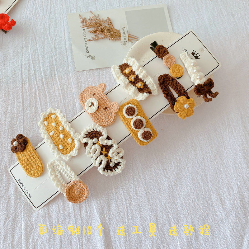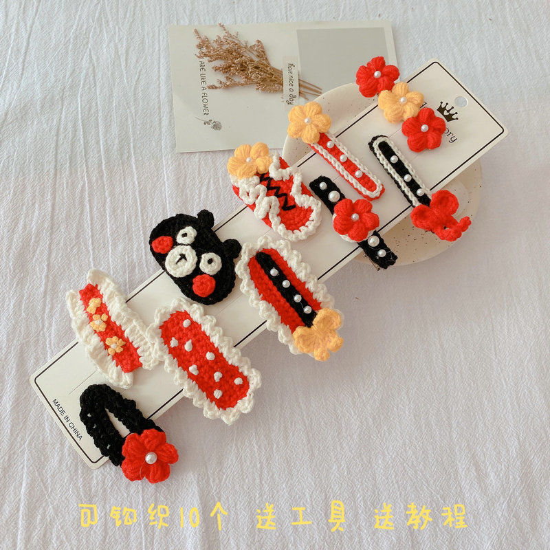 手工发夹发卡编织毛线钩针勾线活发夹手工针织发圈胸针DIY材料包