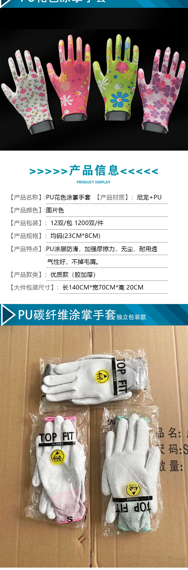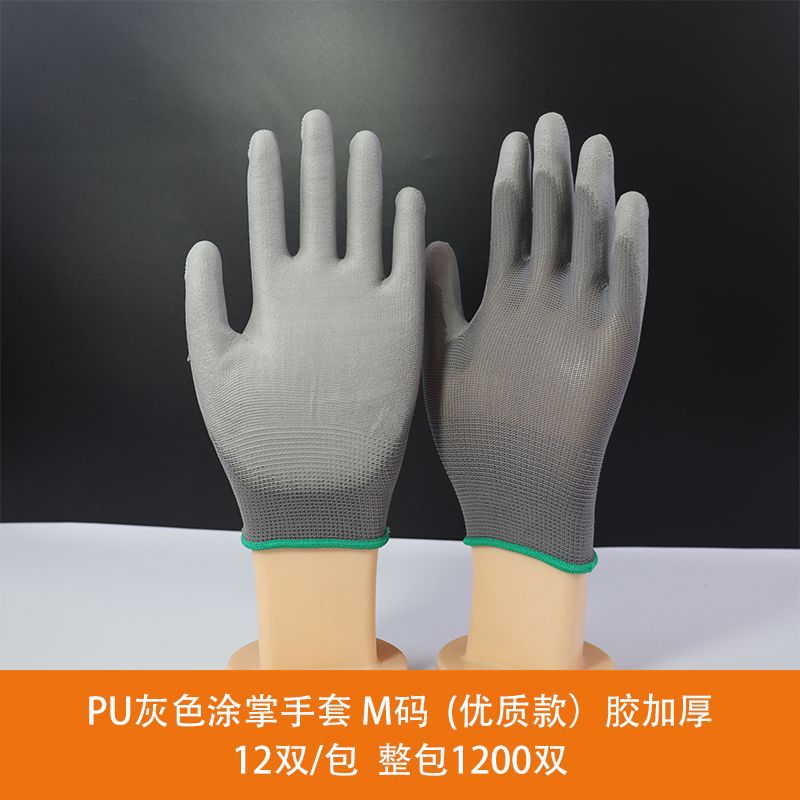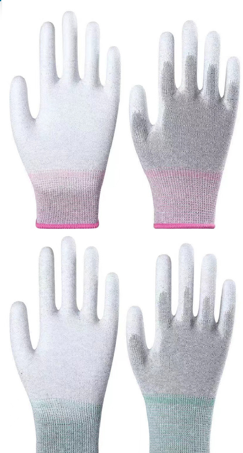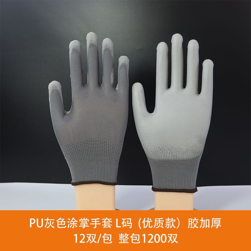 现货劳保手套PU涂掌手套 13针尼龙白色防静电无尘浸胶防护手套